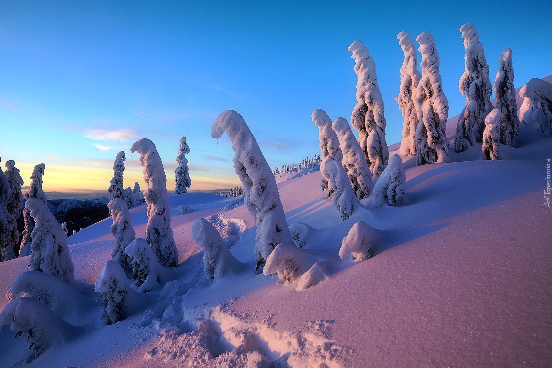 Edytor tapety: Góry, Drzewa, Wschód, Słońca