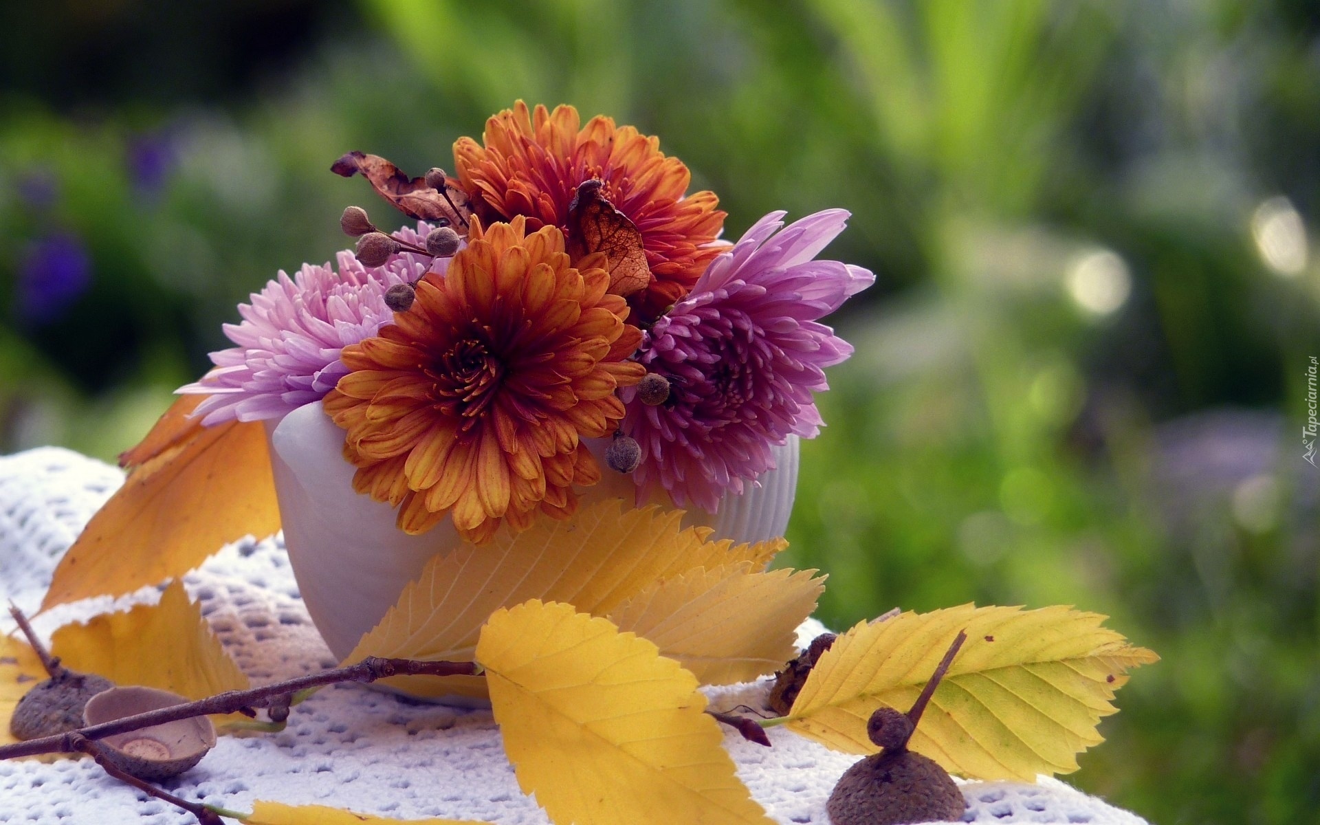 Edytor tapety: Bukiecik, Chryzantem, Gałązka, Jesień