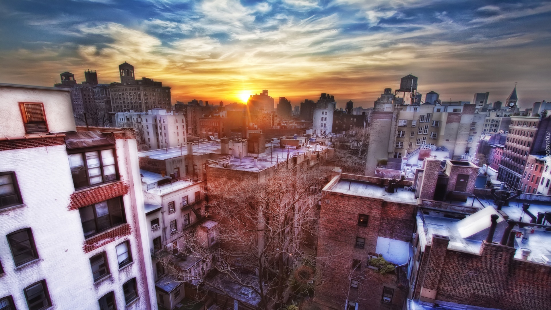 Edytor tapety: Zachód, Słońca, Nowy, Jork, Drapacze, Chmur
