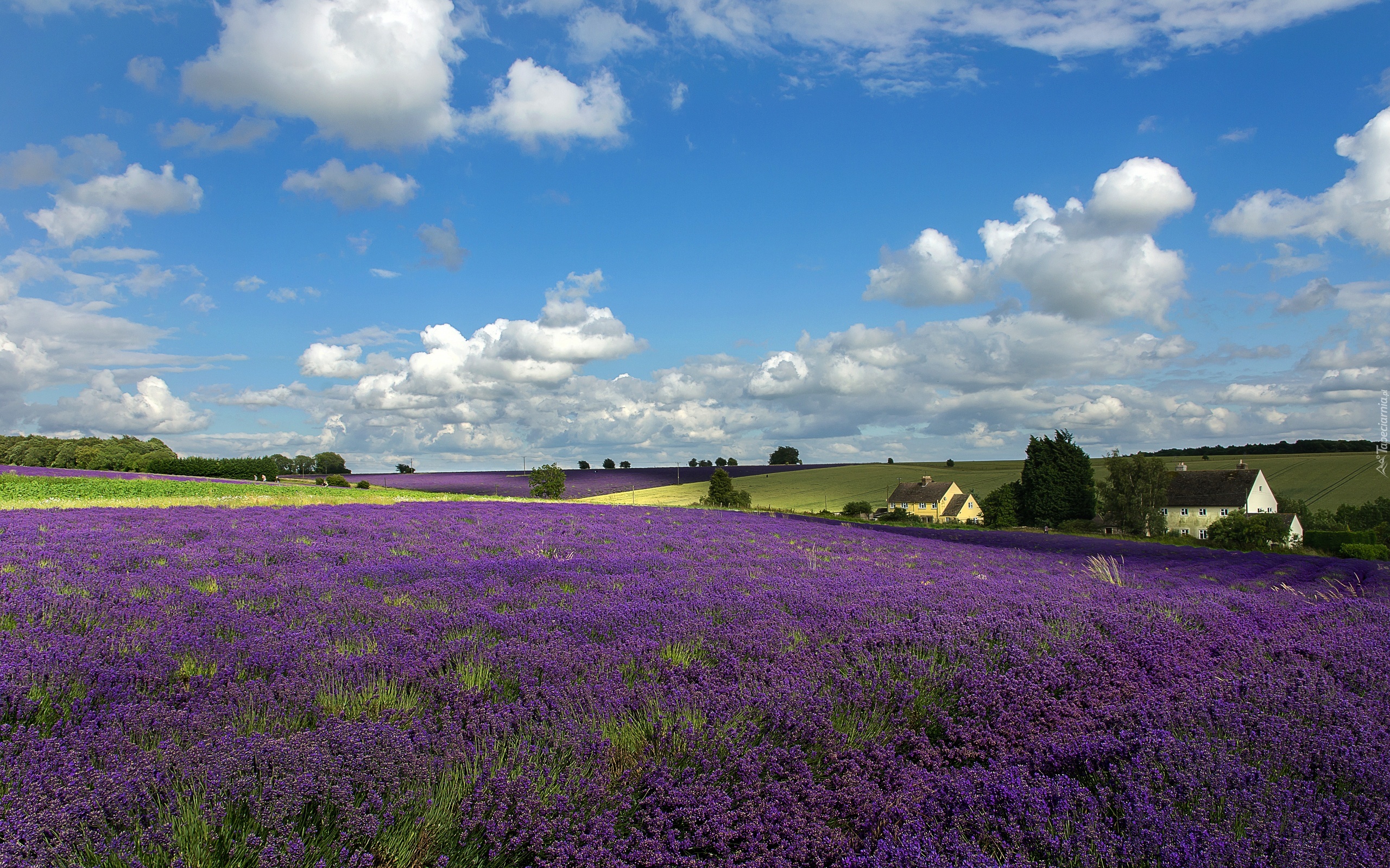 Edytor tapety: Pole, Lawendowe, Farmy, Chmury, Lato