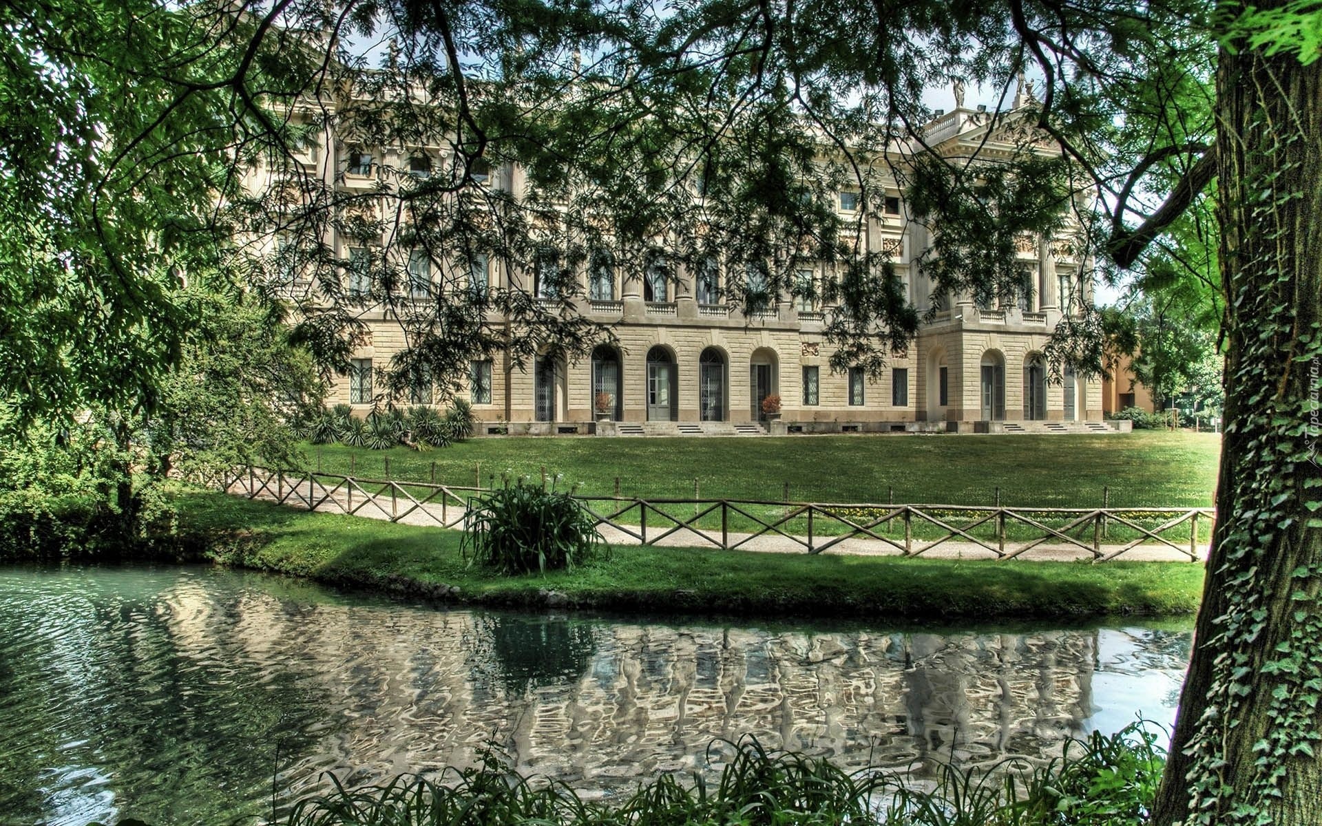Edytor tapety: Mediolan, Pałacyk, Park, Staw