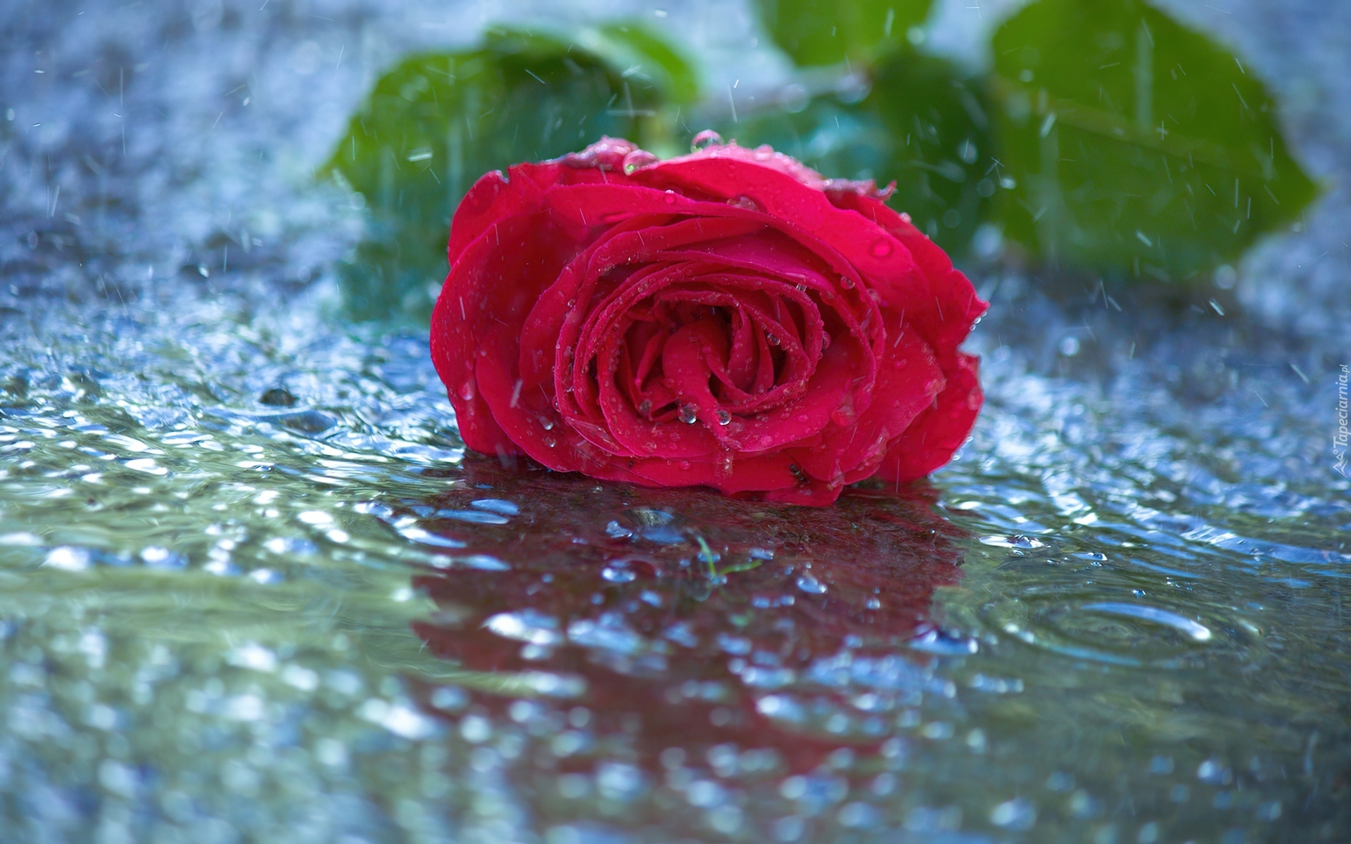 Edytor tapety: Czerwona, Róża, Woda, Odbicie