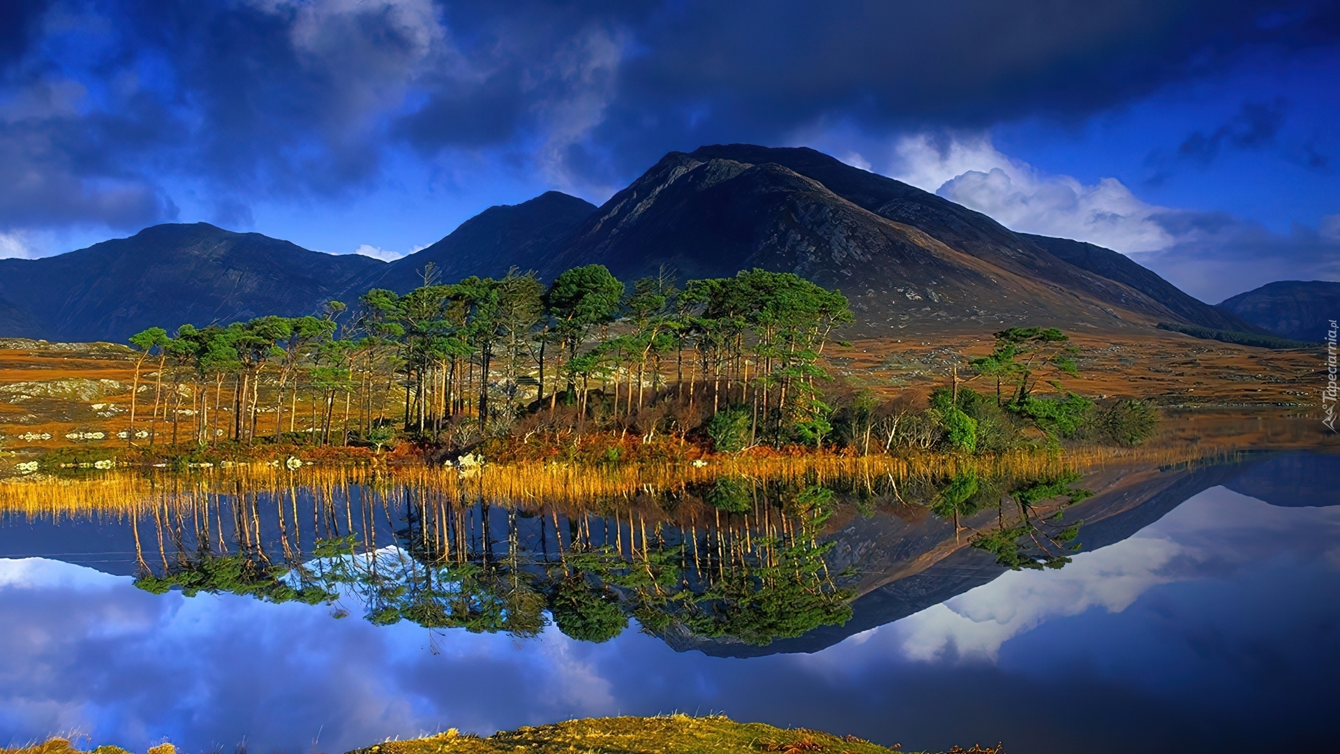 Edytor tapety: Jezioro, Góra, Drzewa, Odbicie