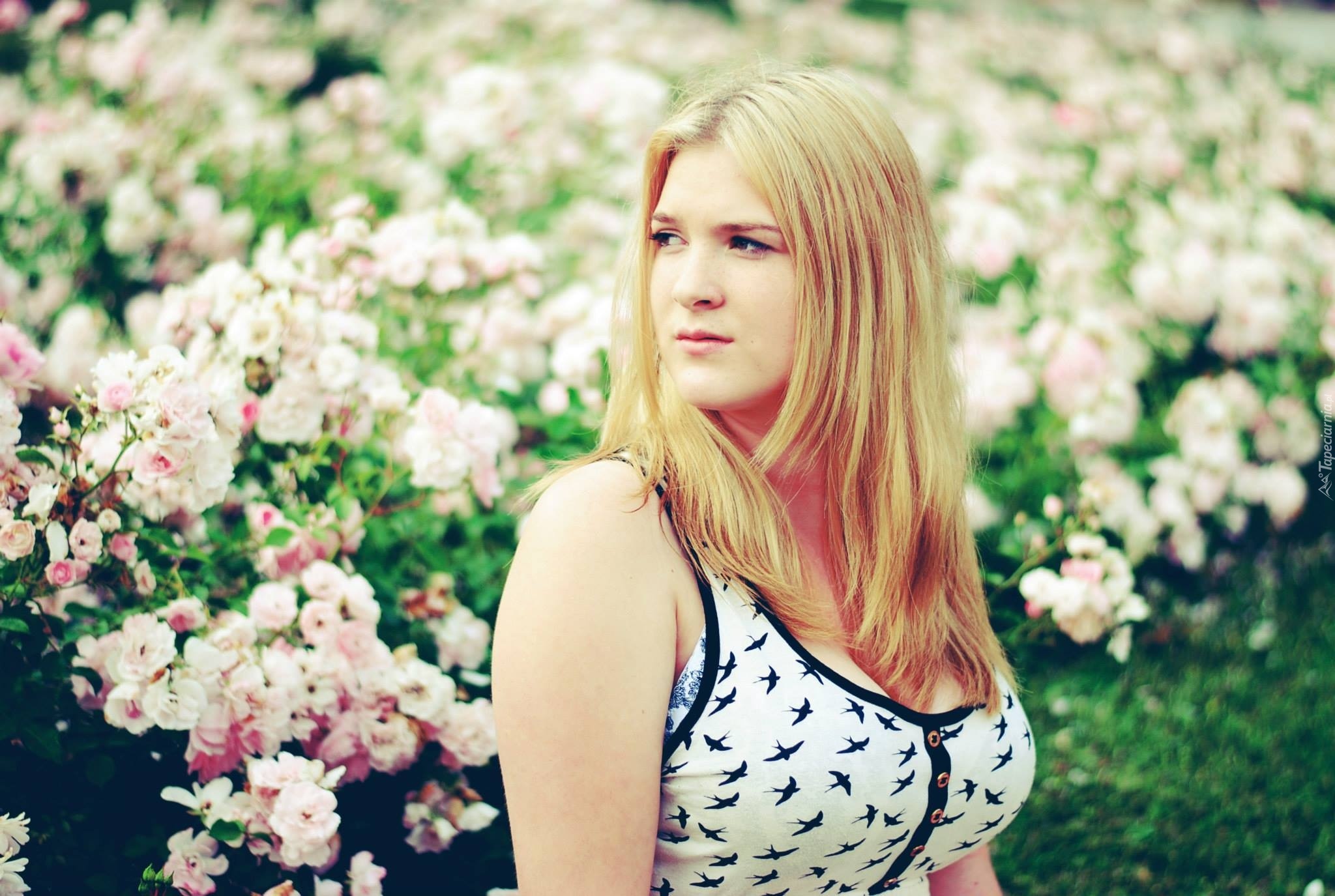 Edytor tapety: Kobieta, Blondynka, Różowe, Kwiaty