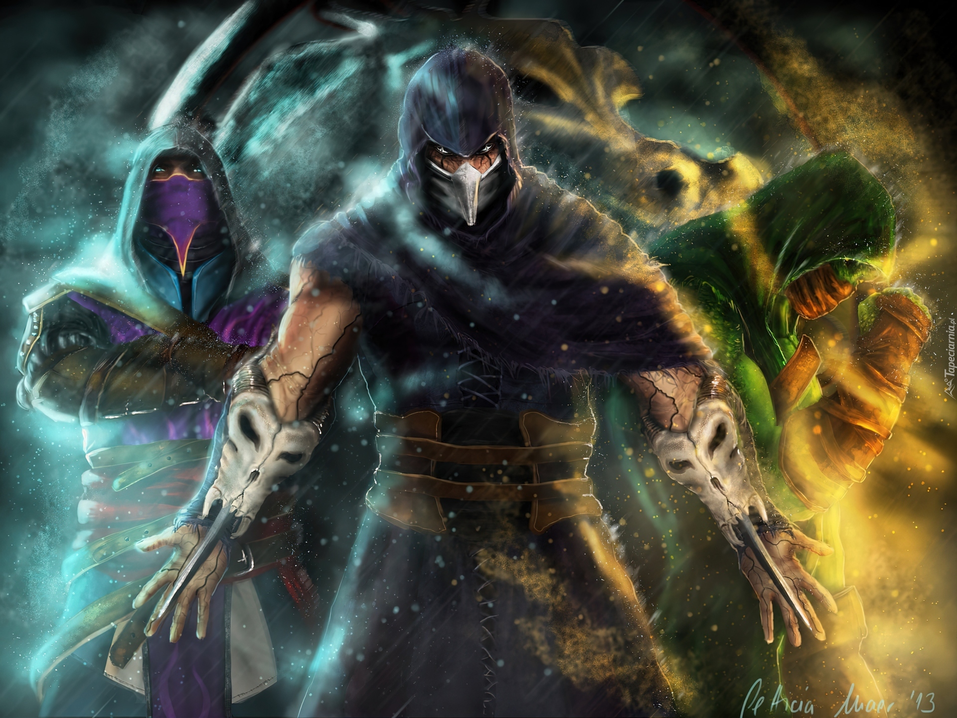 Edytor tapety: Mortal Kombat, Rain, Noob Saibot, Reptile, Letticia Maer