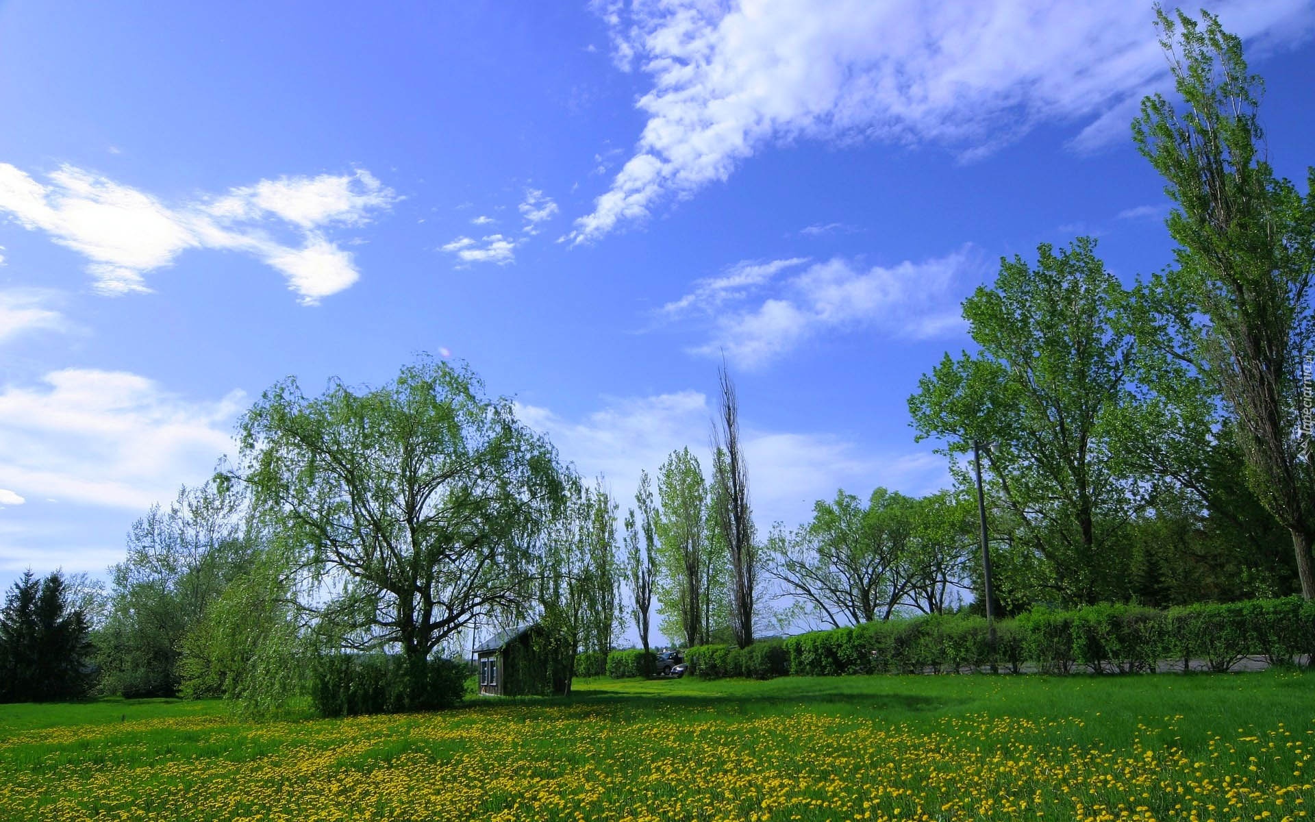 Edytor tapety: Droga, Drzewa, Łąka, Domek