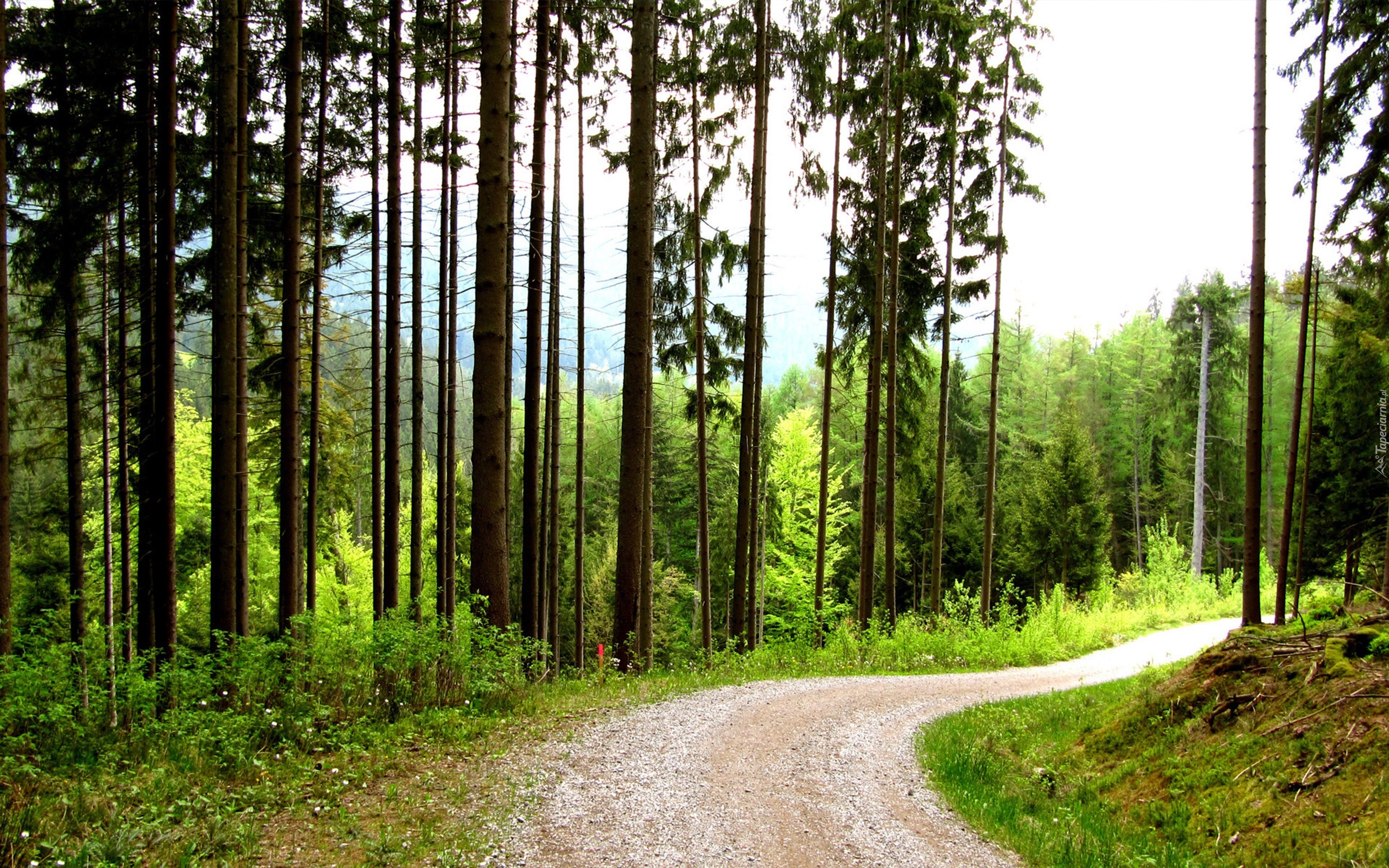 Edytor tapety: Las, Drzewa, Droga, Zakręt, Trawa