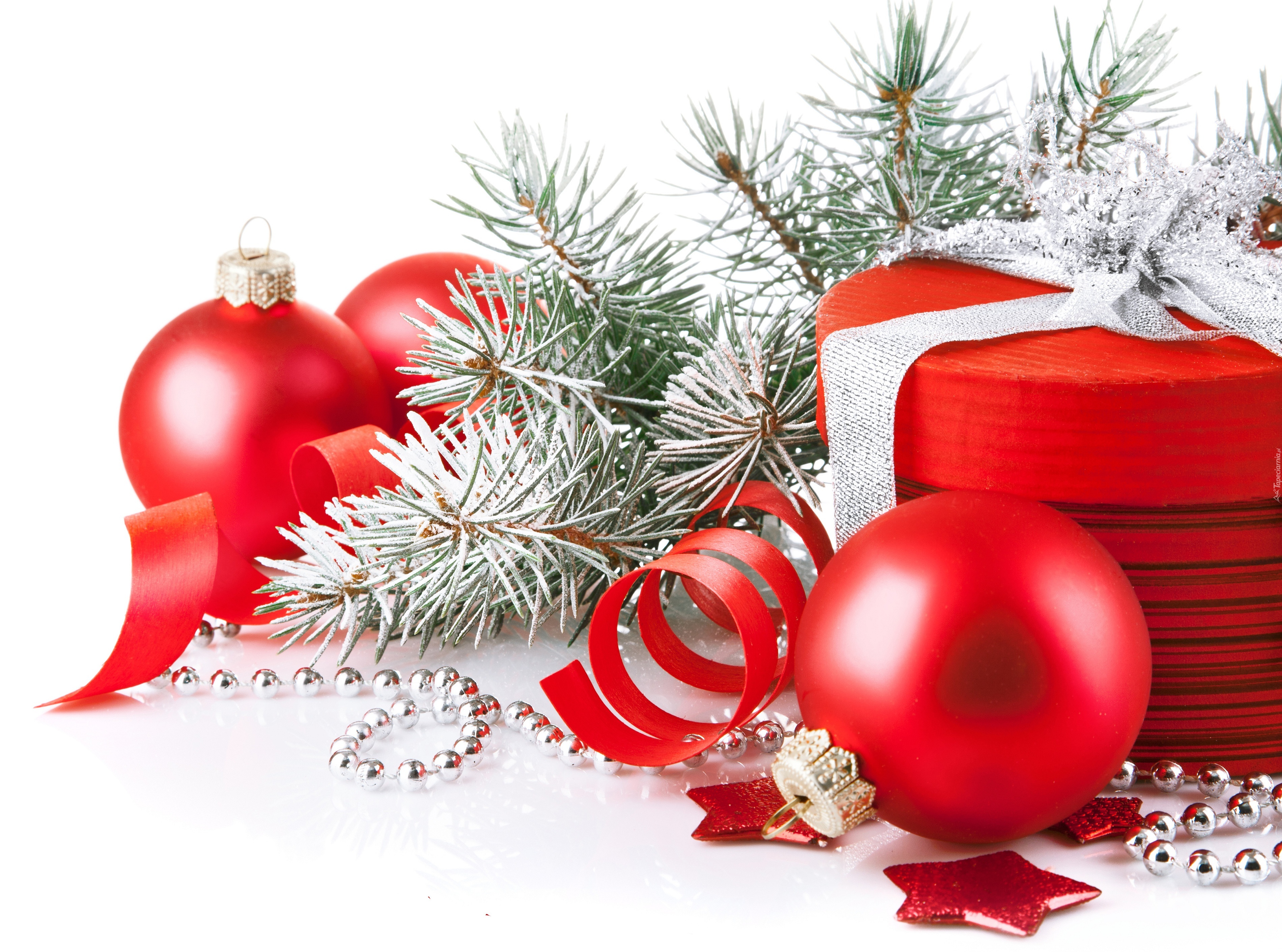 Edytor tapety: Prezent, Gałązki, Bombki, Wstążka