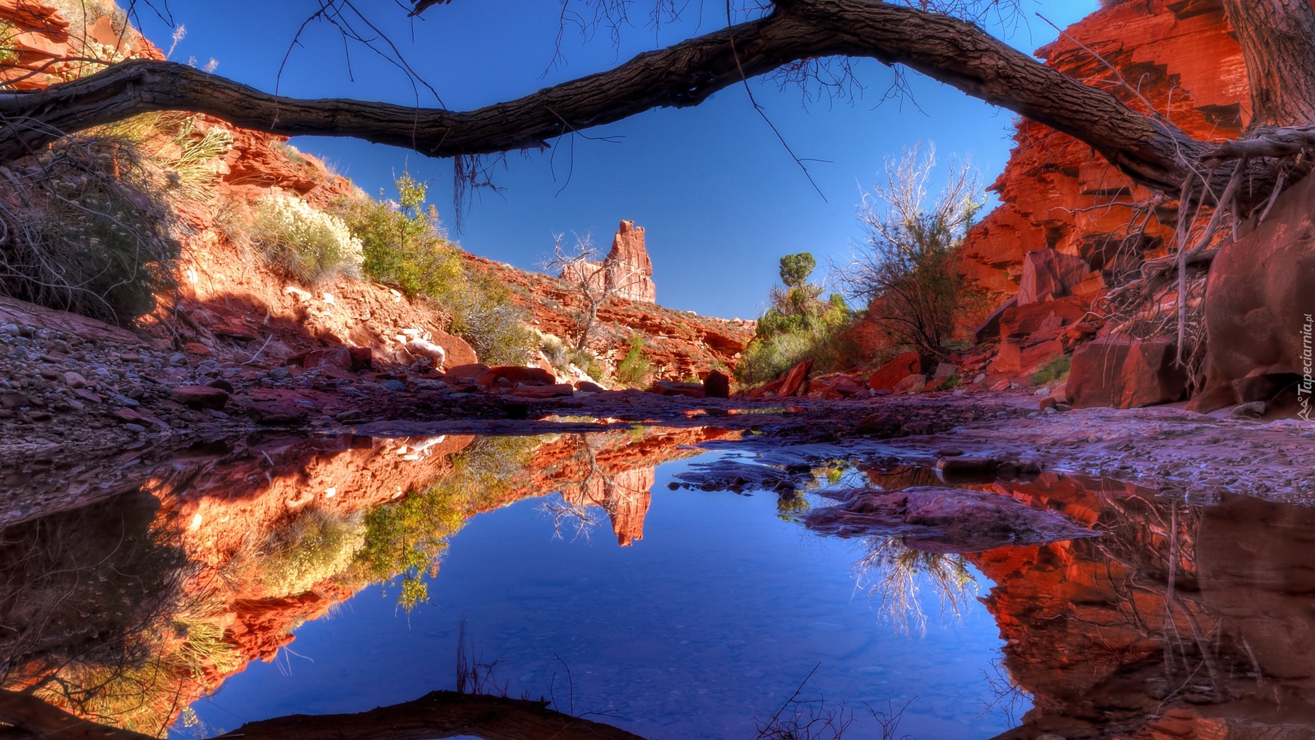 Edytor tapety: Kanion, Woda, Odbicie, Konar