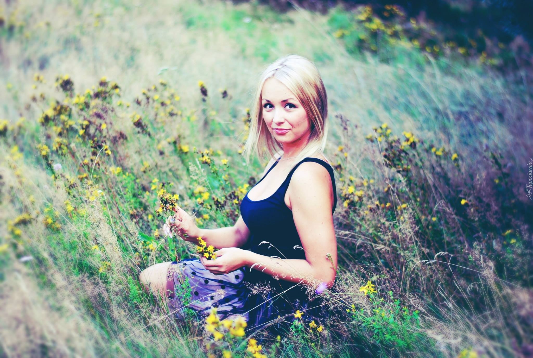 Edytor tapety: Kobieta, Blondynka, Łąka