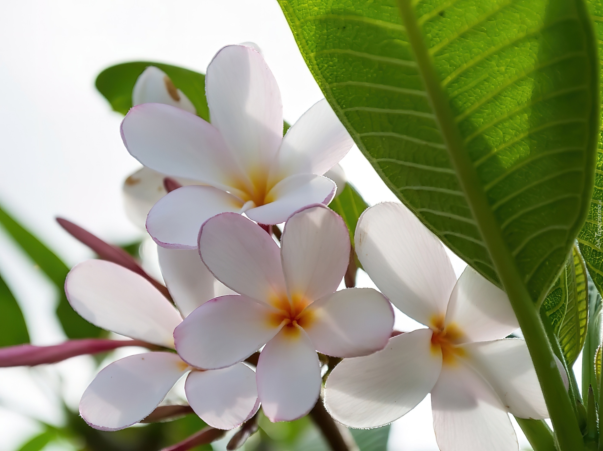 Edytor tapety: Plumeria, Białe, Kwiaty, Liść