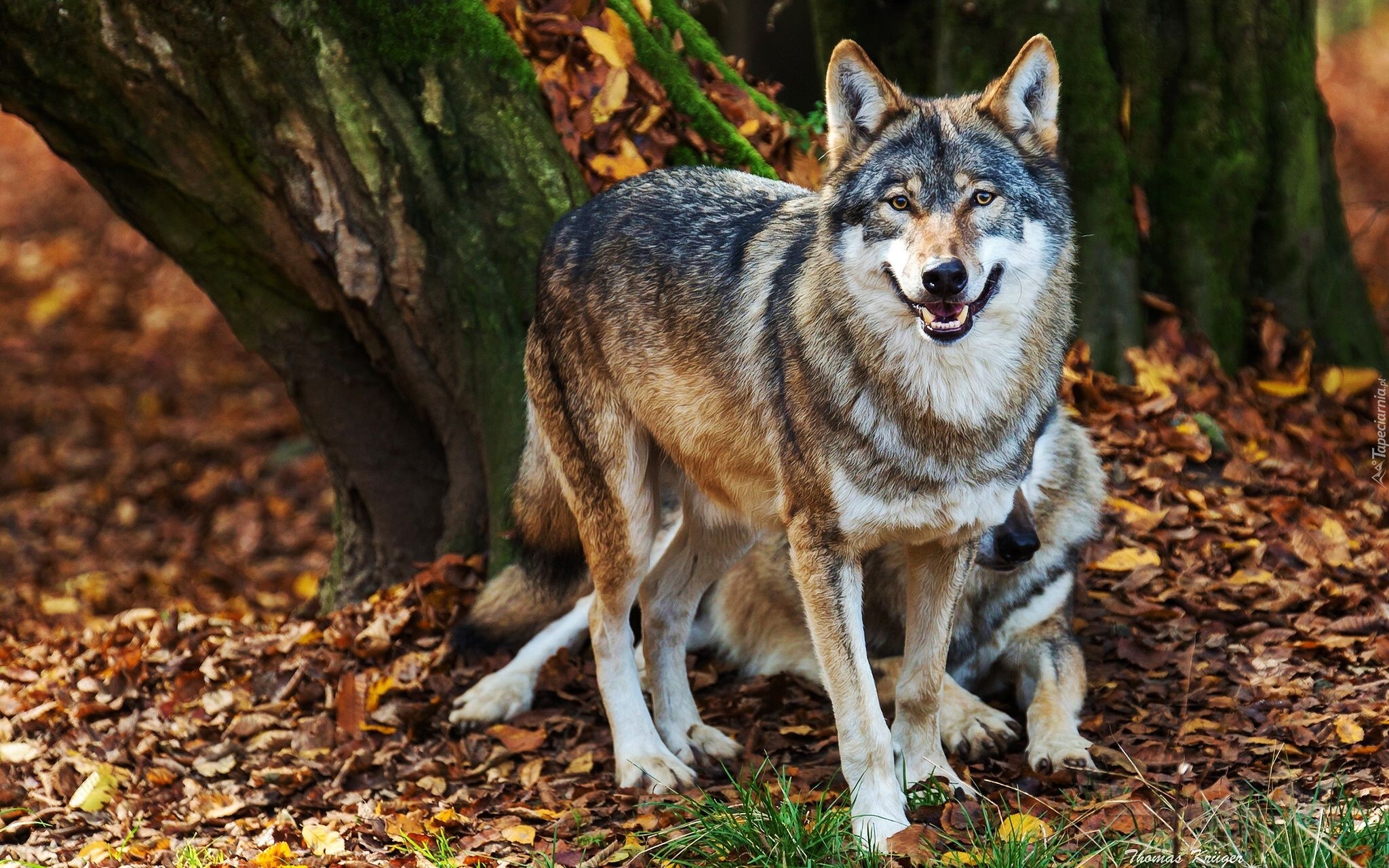 Edytor tapety: Wilki, Liście, Pień, Drzewa