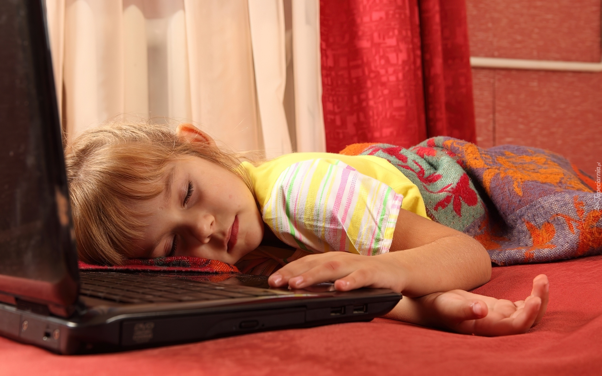 Edytor tapety: Dziecko, Dziewczynka, Laptop, Odpoczynek, Sen