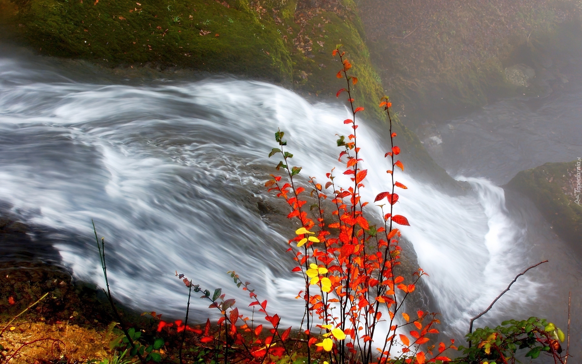Edytor tapety: Jesień, Góry, Strumyk, Roślinki, Kolorowe, Liście