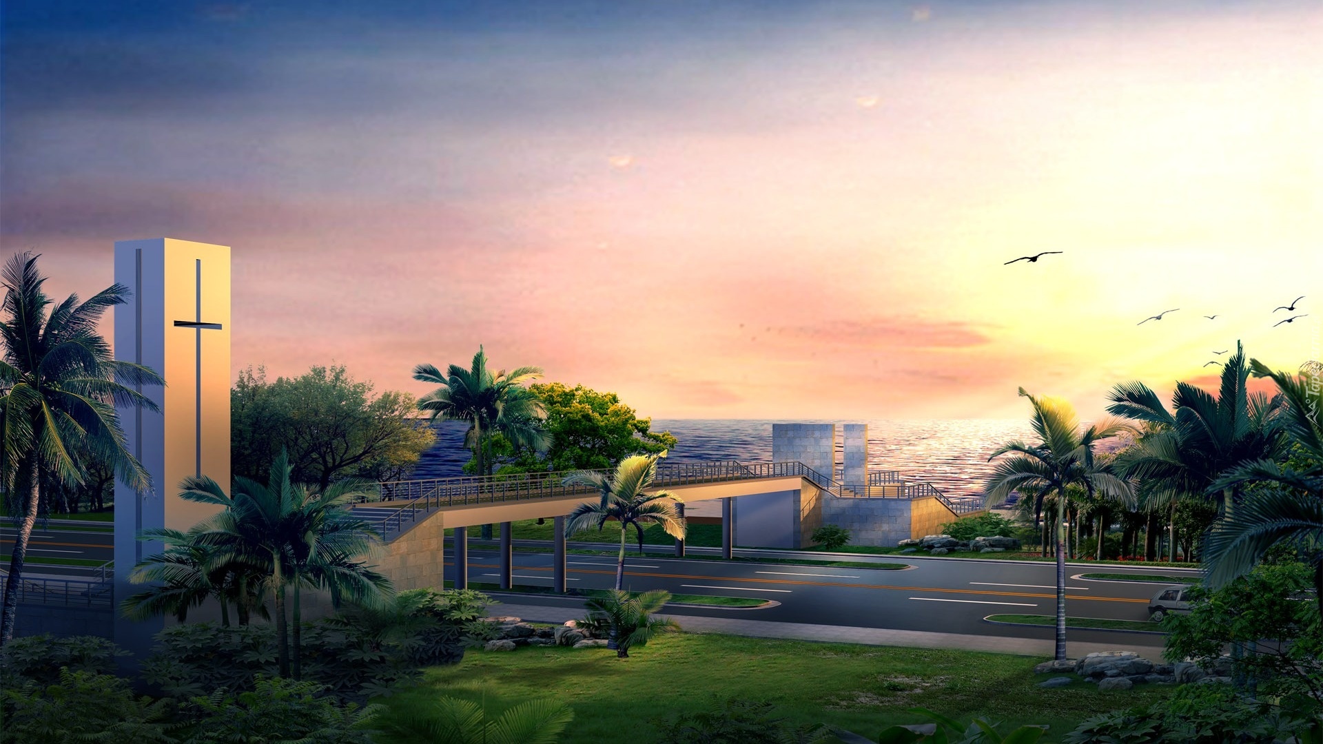Edytor tapety: Wiadukt, Autostrada, Palmy