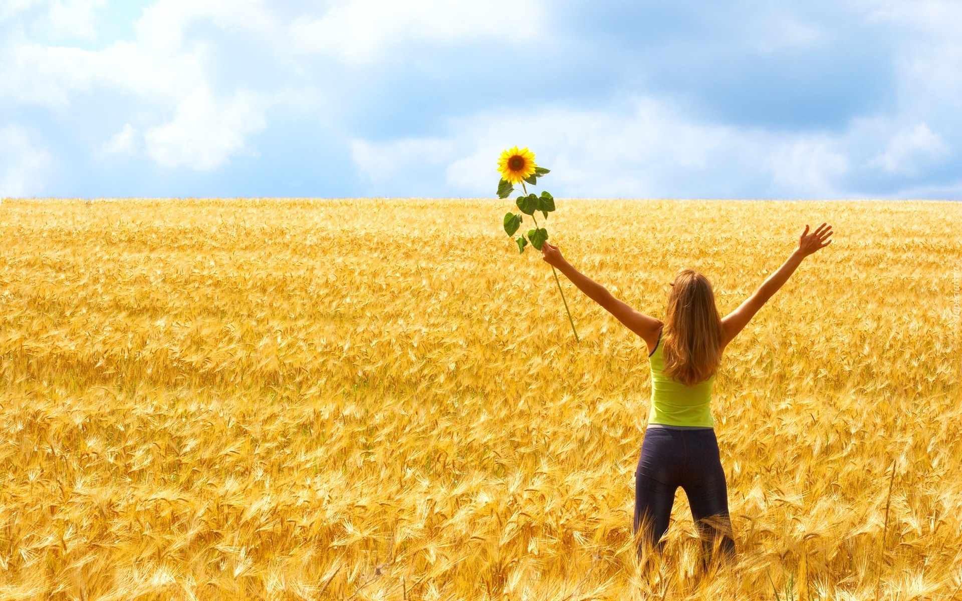 Edytor tapety: Pole, Zboże, Dziewczyna, Słonecznik
