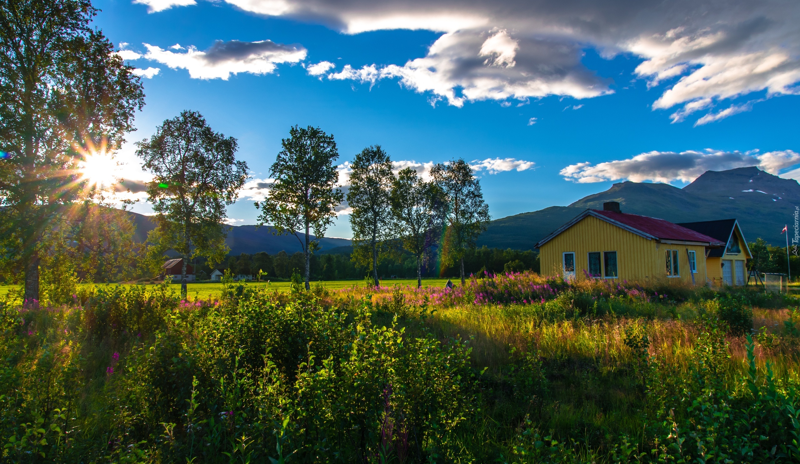 Edytor tapety: Góry, Lasy, Łąki, Trawy, Kwiaty, Budynki