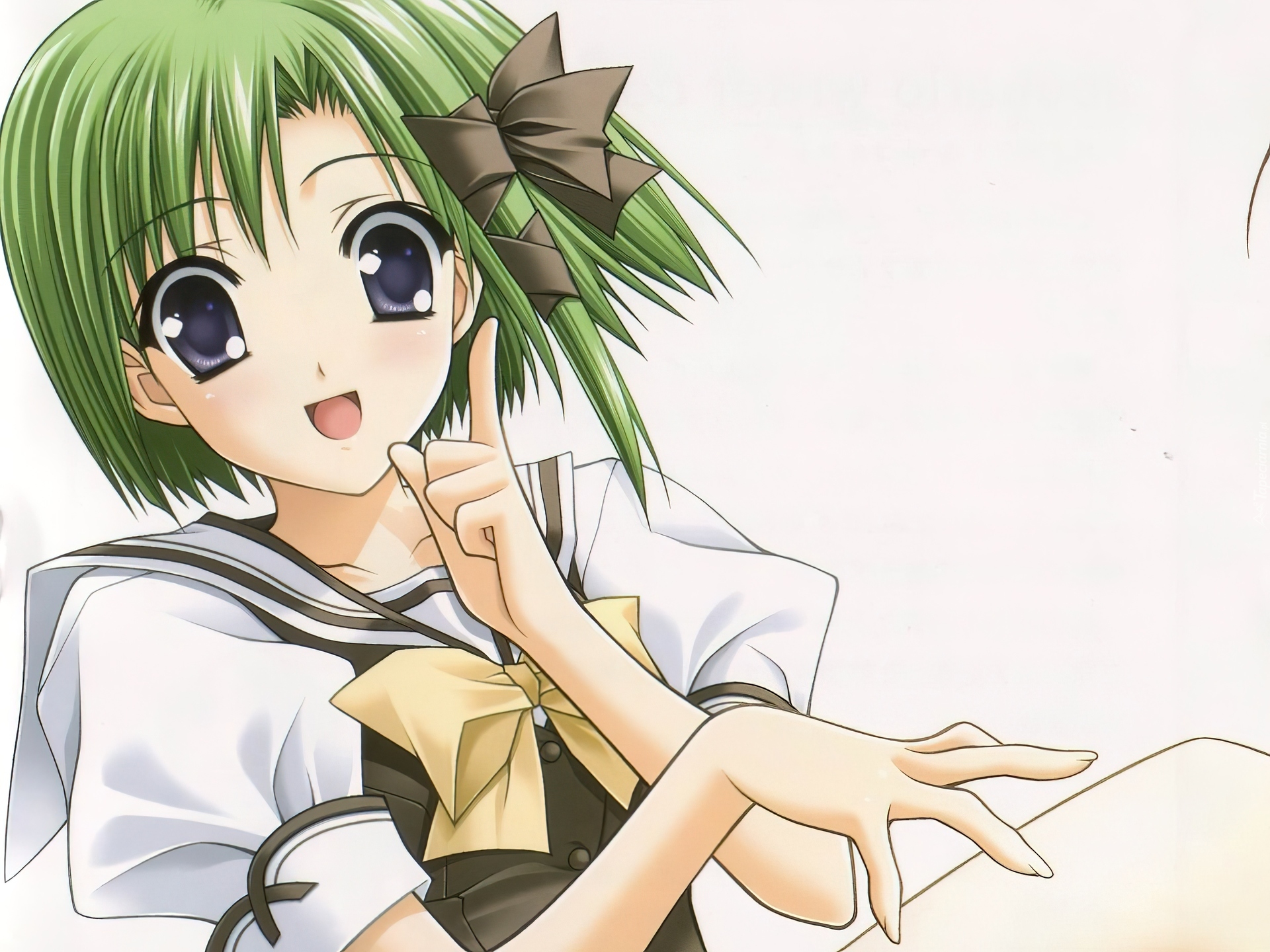 Edytor tapety: Shuffle, zielone włosy, kokarda