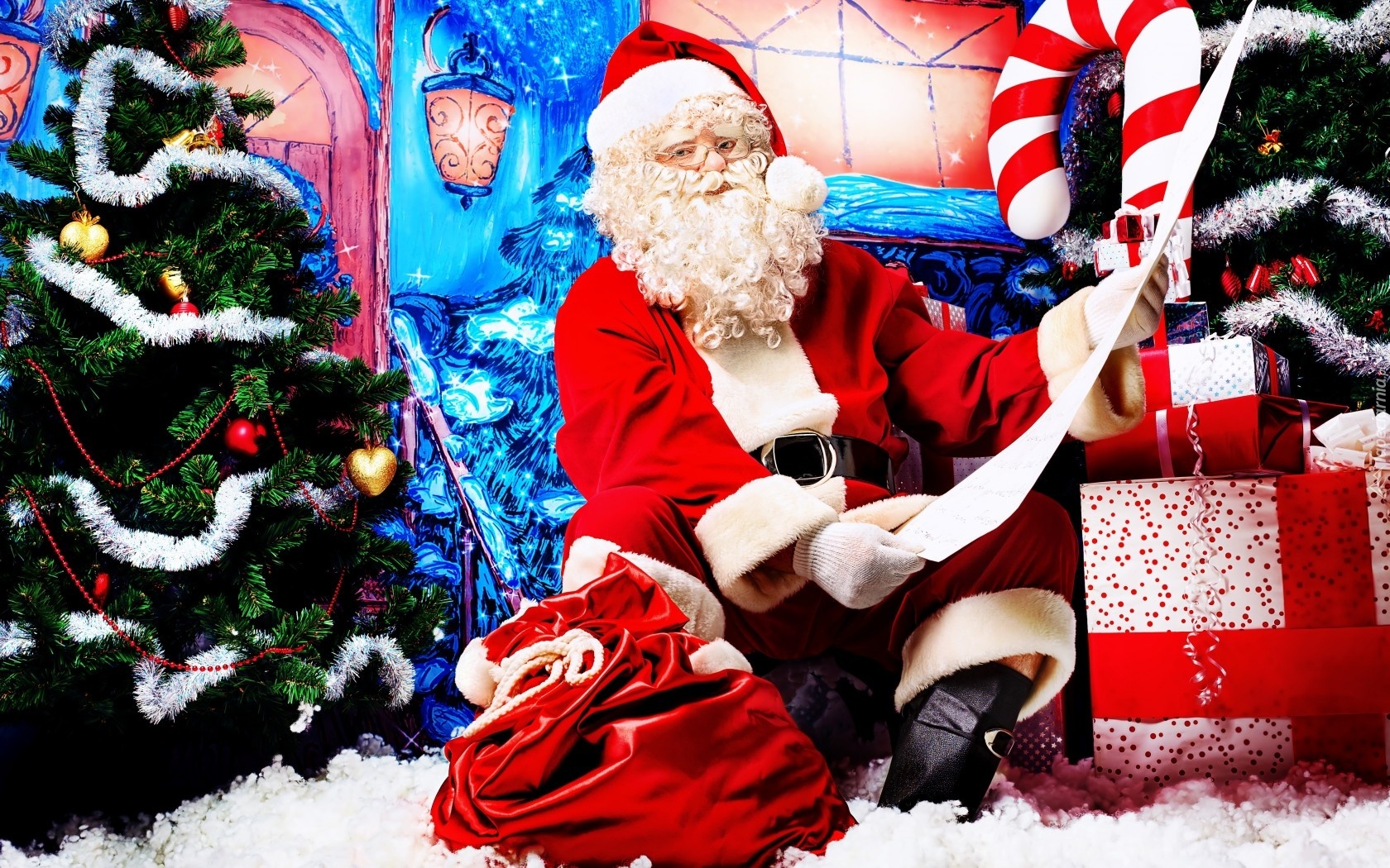 Edytor tapety: Mikołaj, Paczki, Worek, Choinki