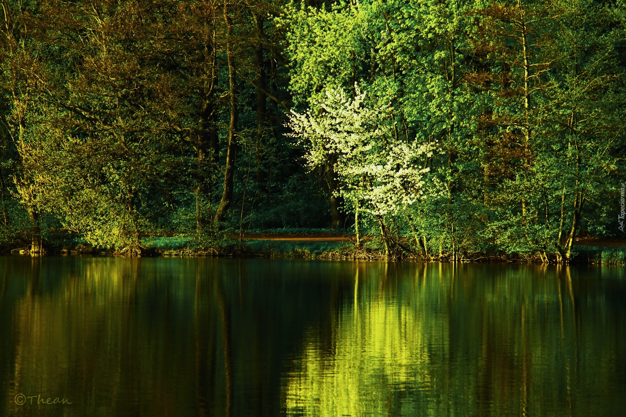 Edytor tapety: Jezioro, Drzewa, Wiosna