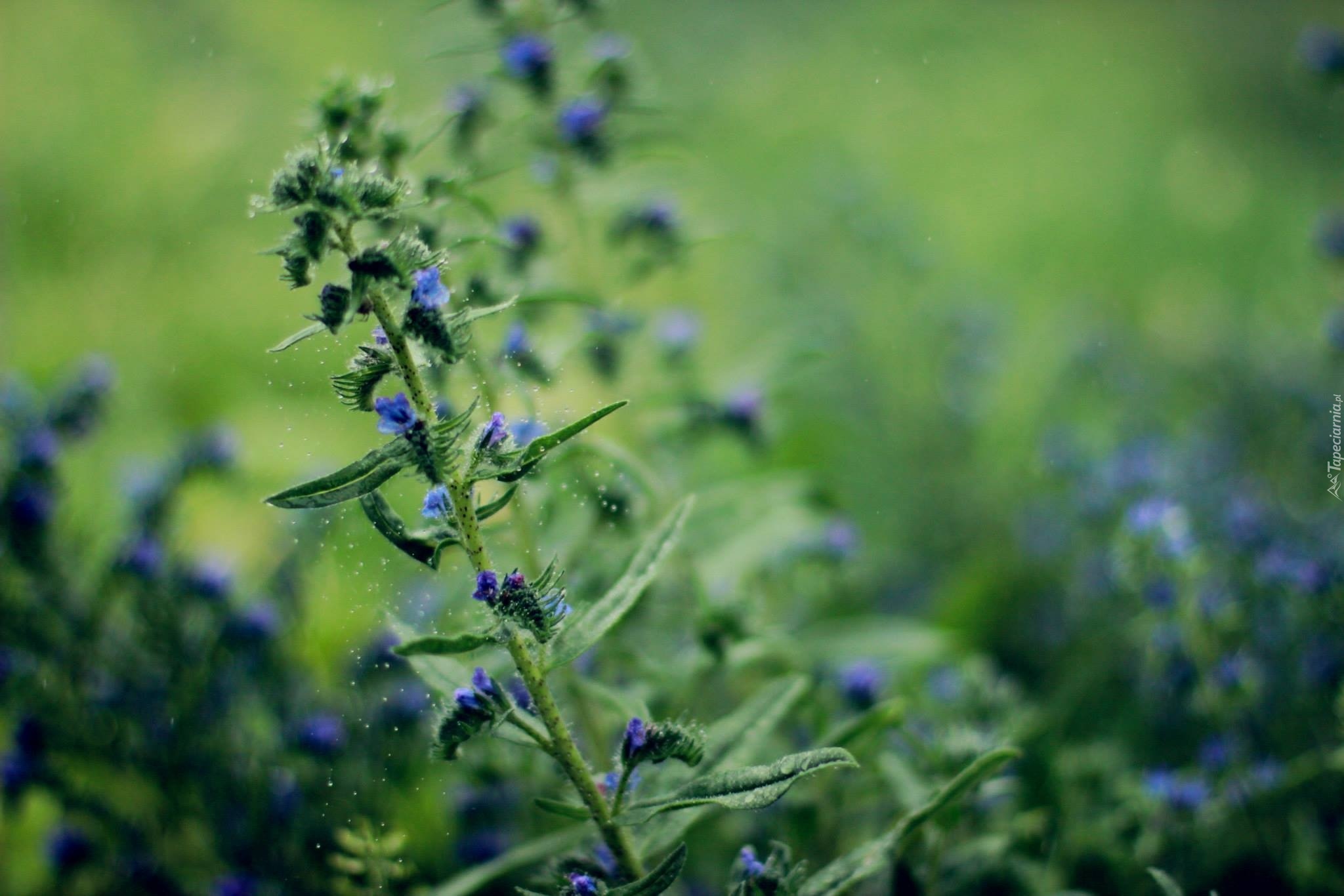 Edytor tapety: Ciemnoniebieskie, Kwiaty, Deszcz