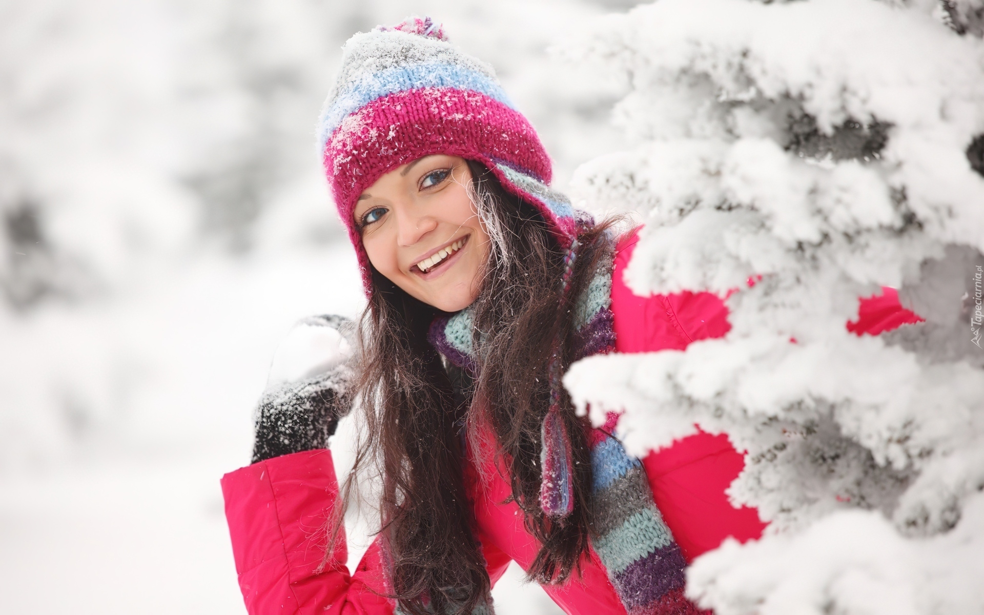 Edytor tapety: Uśmiechnięta, Piękna, Kobieta, Śnieg