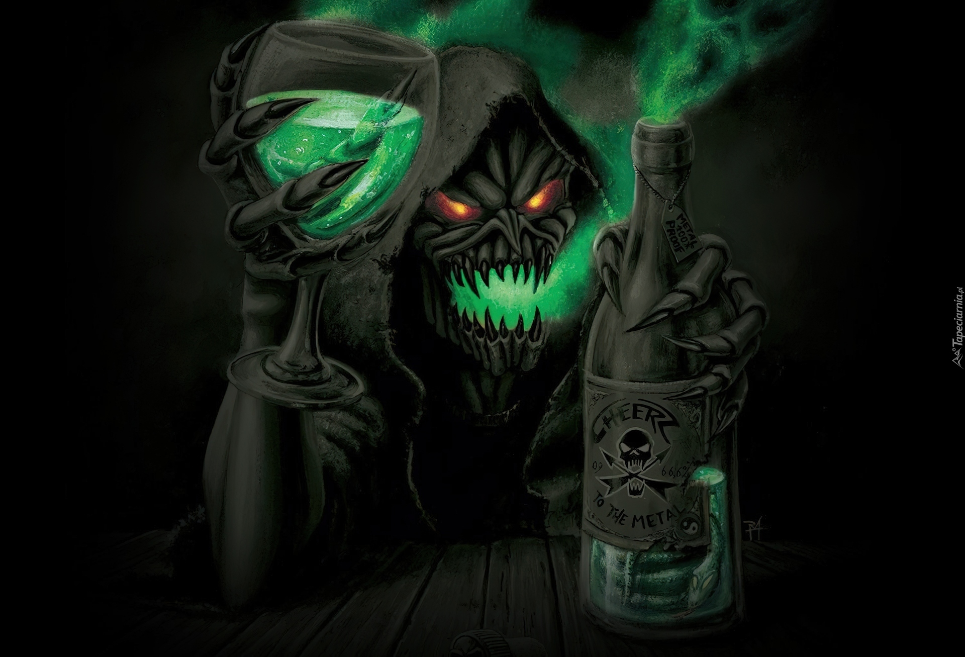 Edytor tapety: Gamma Ray, Potwór, Butelka, Kieliszek
