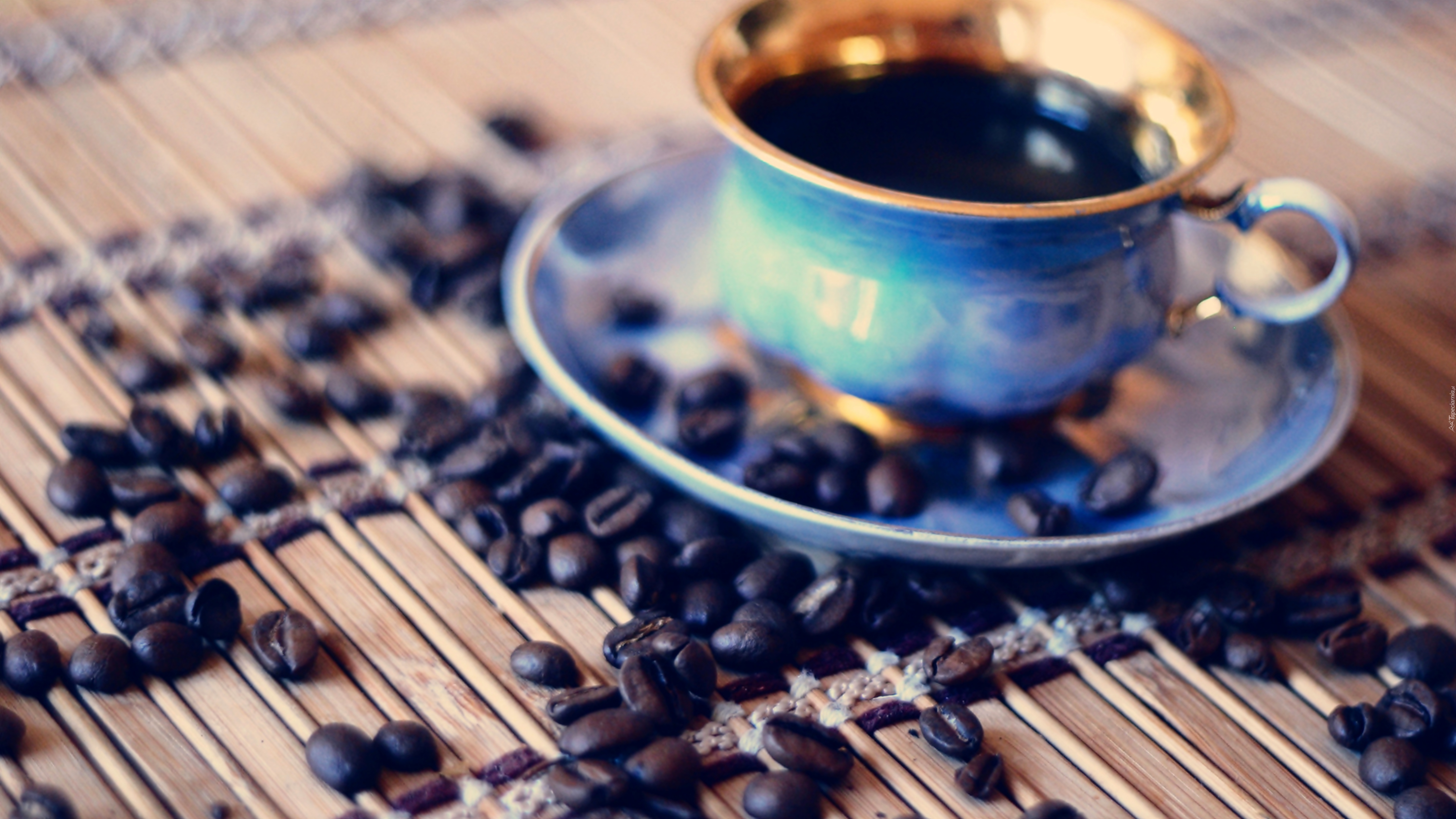 Edytor tapety: Ziarna, Kawy, Niebieska, Filiżanka, Talerzyk