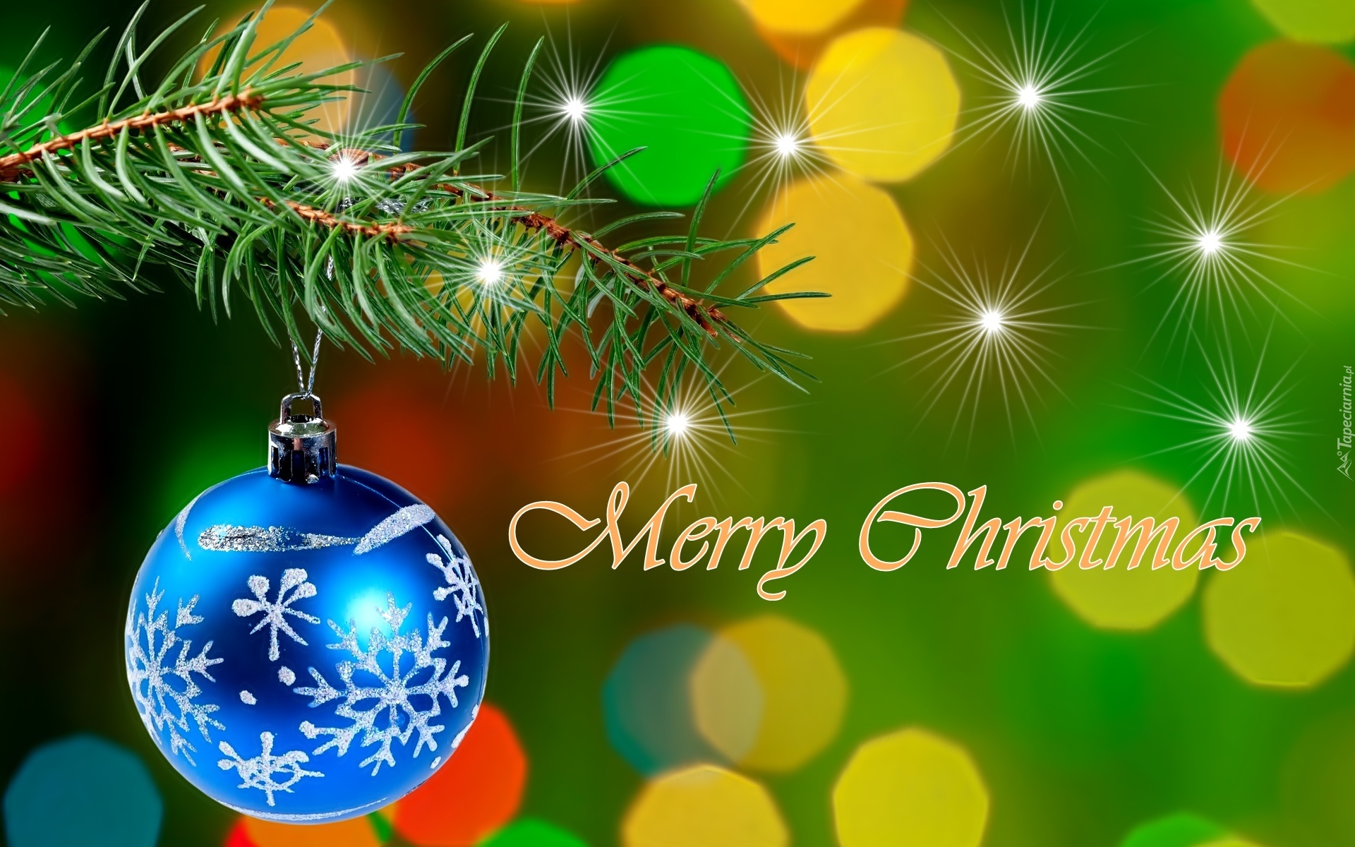 Edytor tapety: Boże, Narodzenie, Niebieska, Bombka, Gałązka, Światełka