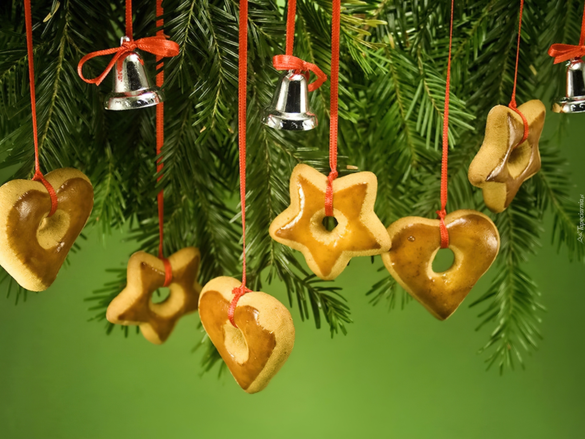 Edytor tapety: Boże, Narodzenie, Ciasteczka, Gałązki, Dzwoneczki
