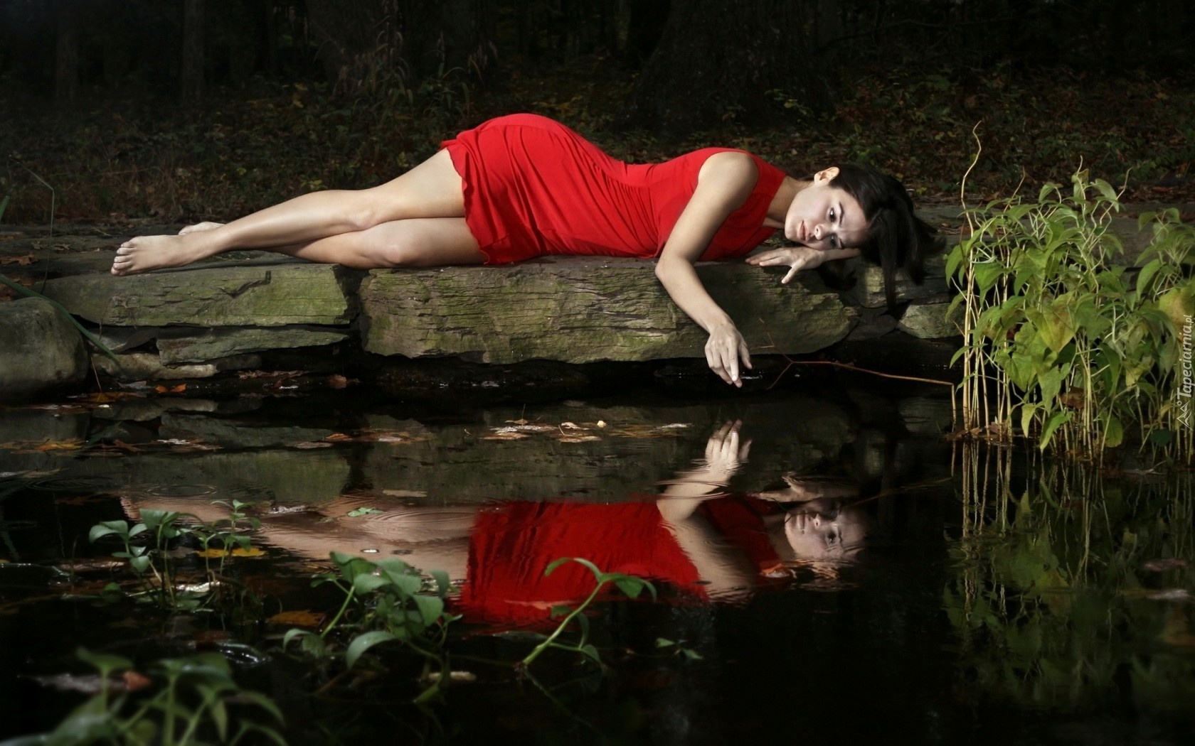 Edytor tapety: Kobieta, Jeziorko, Odbicie
