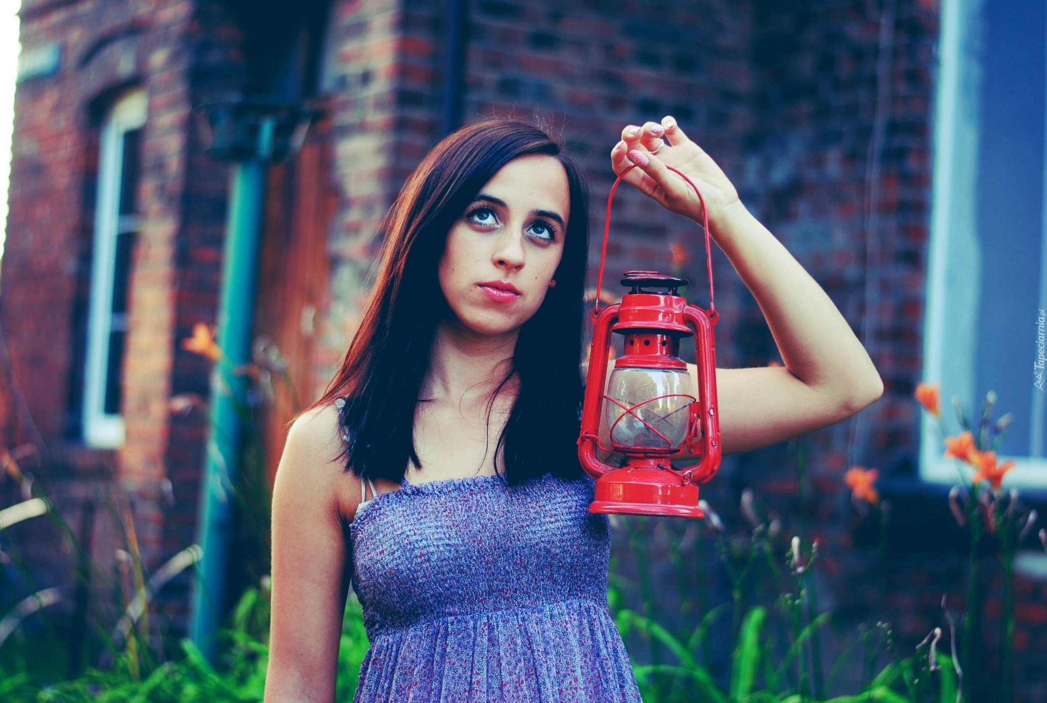 Edytor tapety: Kobieta, Brunetka, Lampa, Naftowa