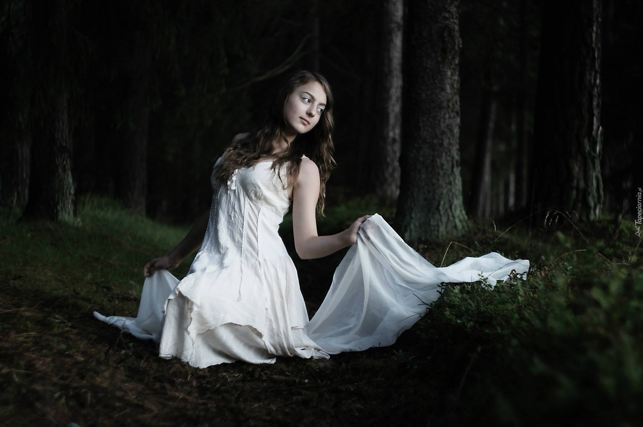 Edytor tapety: Kobieta, Szatynka, Las