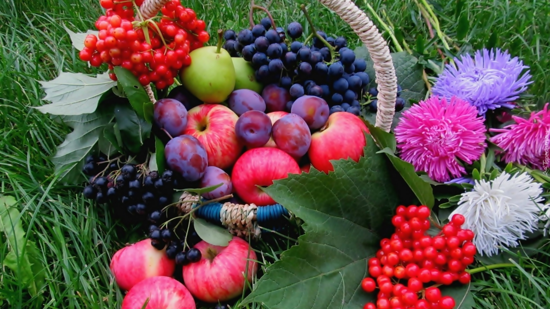 Edytor tapety: Trawnik, Owoce, Kwiaty