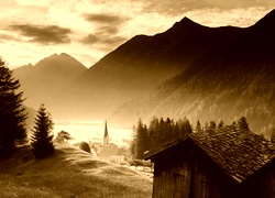 Edytor tapety: Góry, Łąki, Lasy, Chata, Kościół