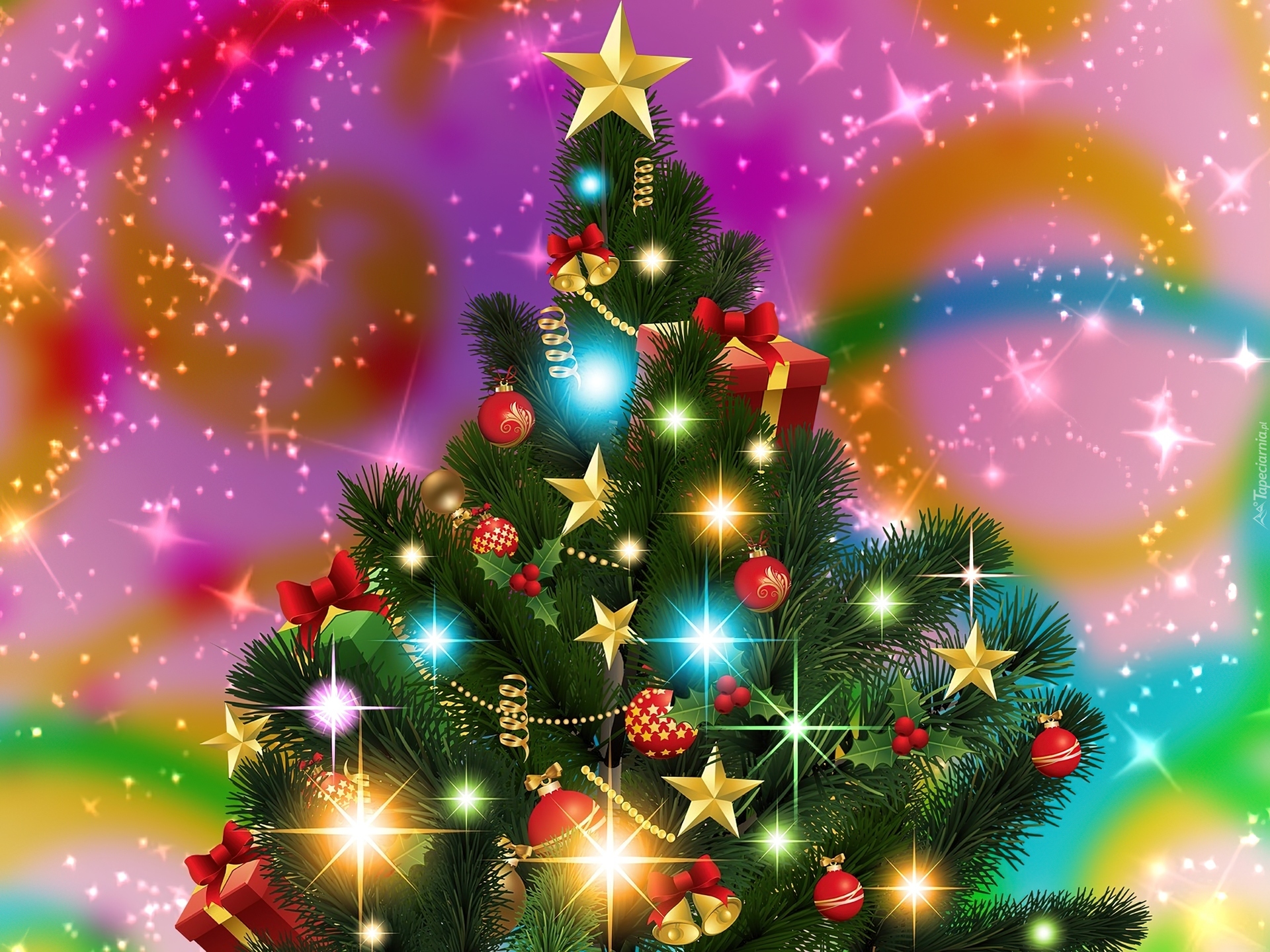 Edytor tapety: Boże, Narodzenie, Choinka, Światełka, Ozdoby