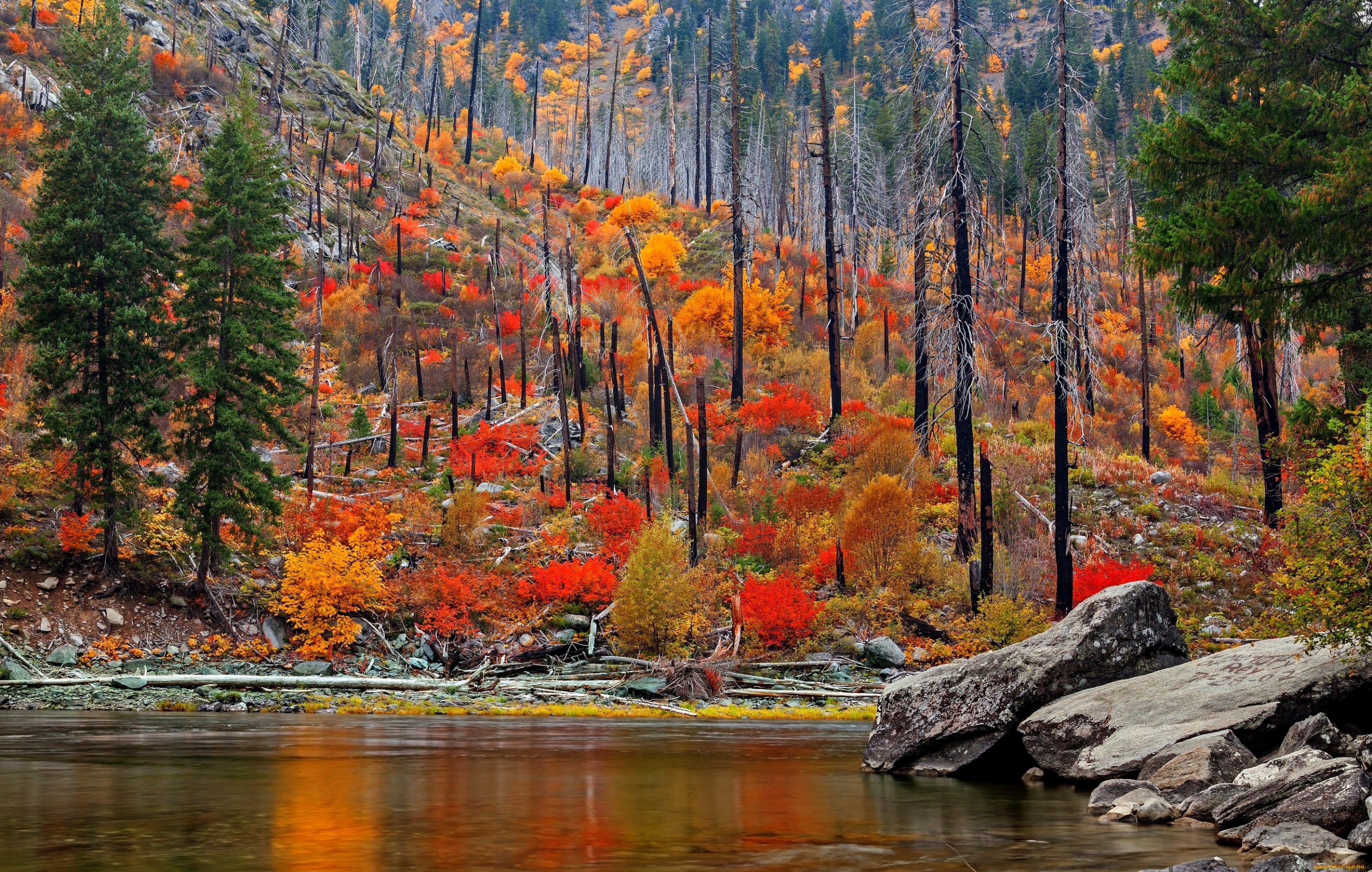 Edytor tapety: Kolorowy, Las, Kamienie, Woda