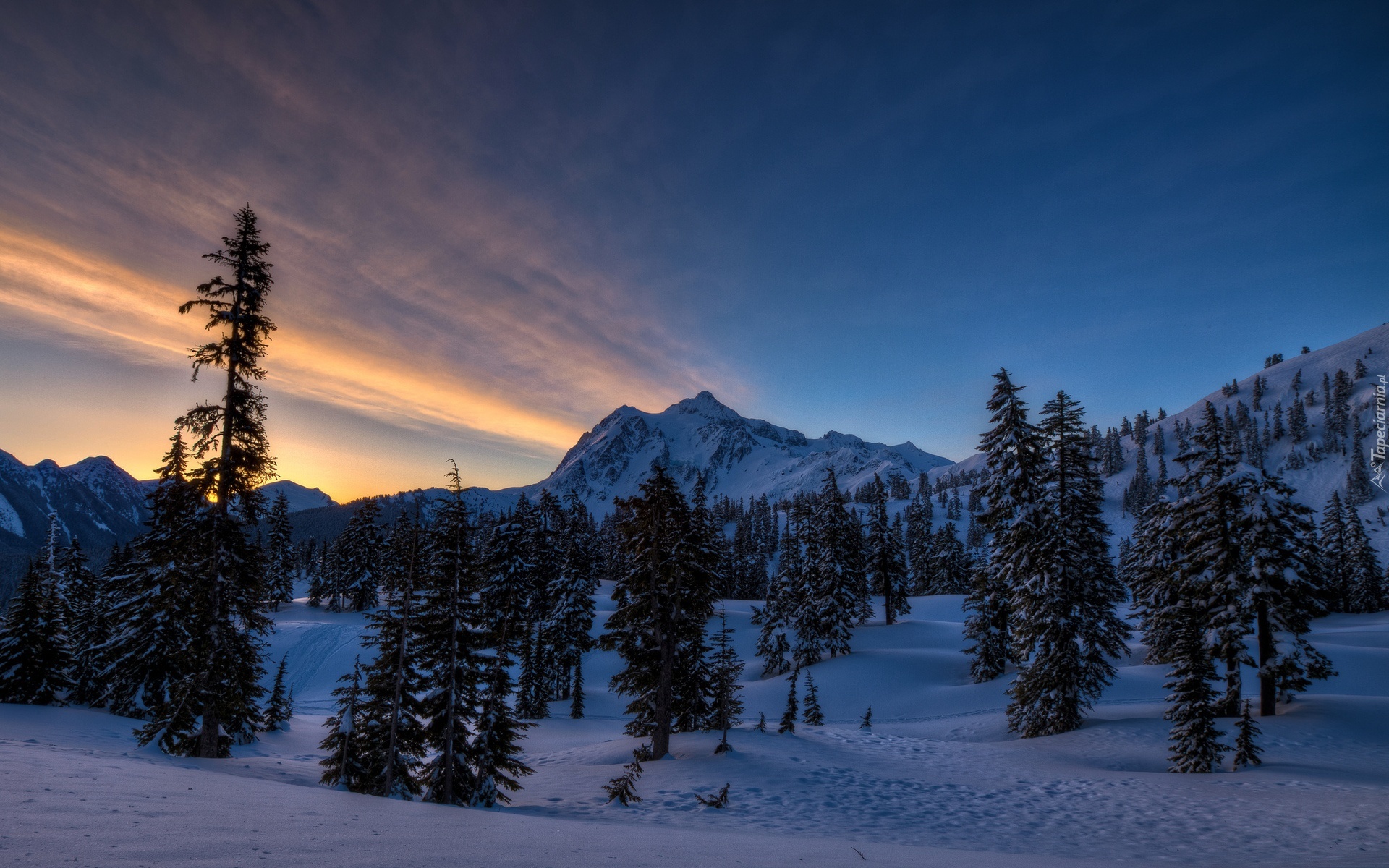 Edytor tapety: Góry, Lasy, Zachód, Słońca, Zima