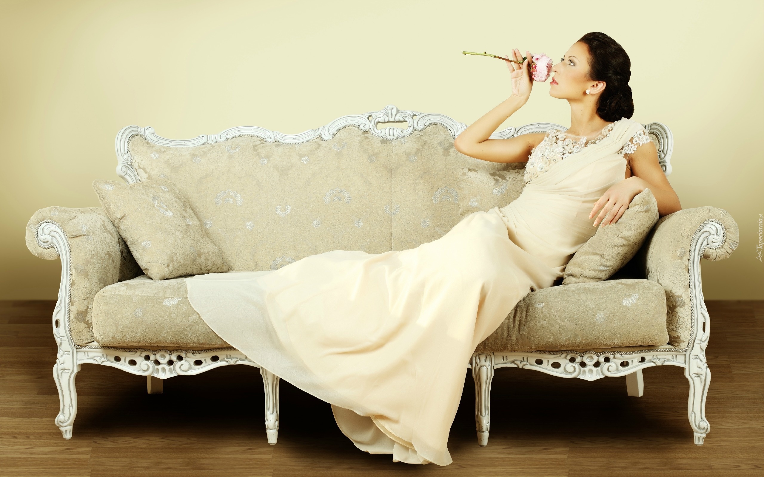 Edytor tapety: Brunetka, Modelka, Róża, Sofa