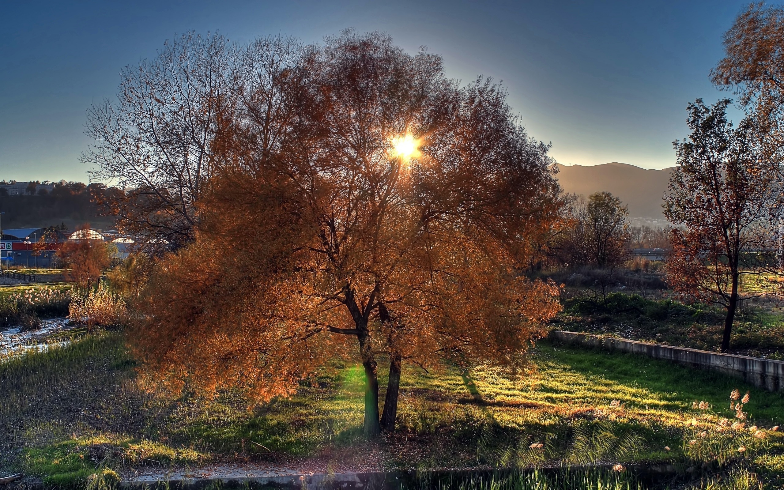 Edytor tapety: Drzewa, Łąka, Promienie, Słońca