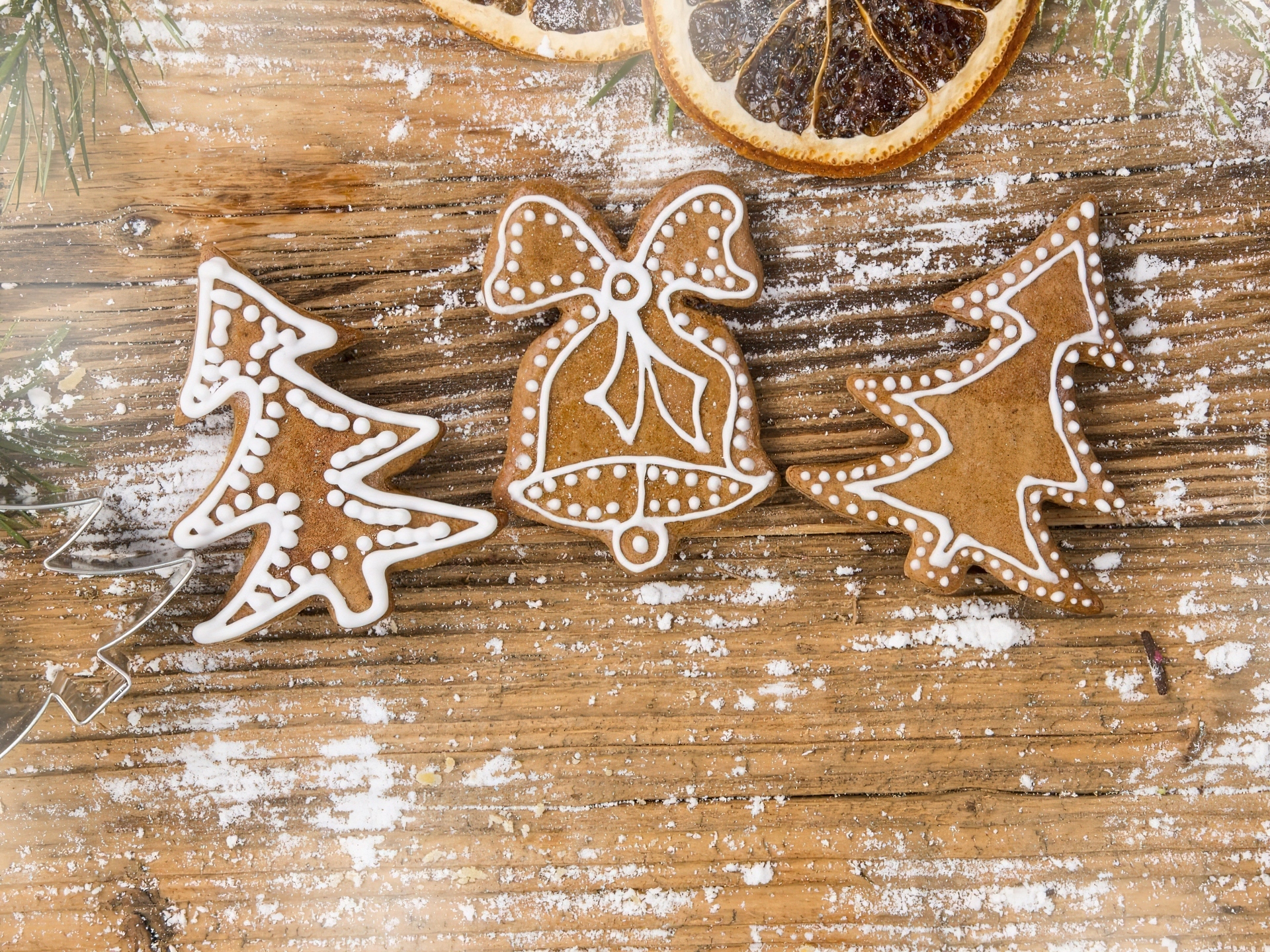 Edytor tapety: Boże, Narodzenie, Lukrowane, Pierniczki, Choinki, Dzwoneczek