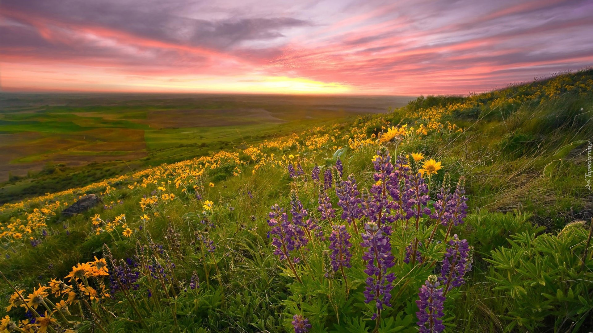 Edytor tapety: Łąka, Chmury, Kwiatki