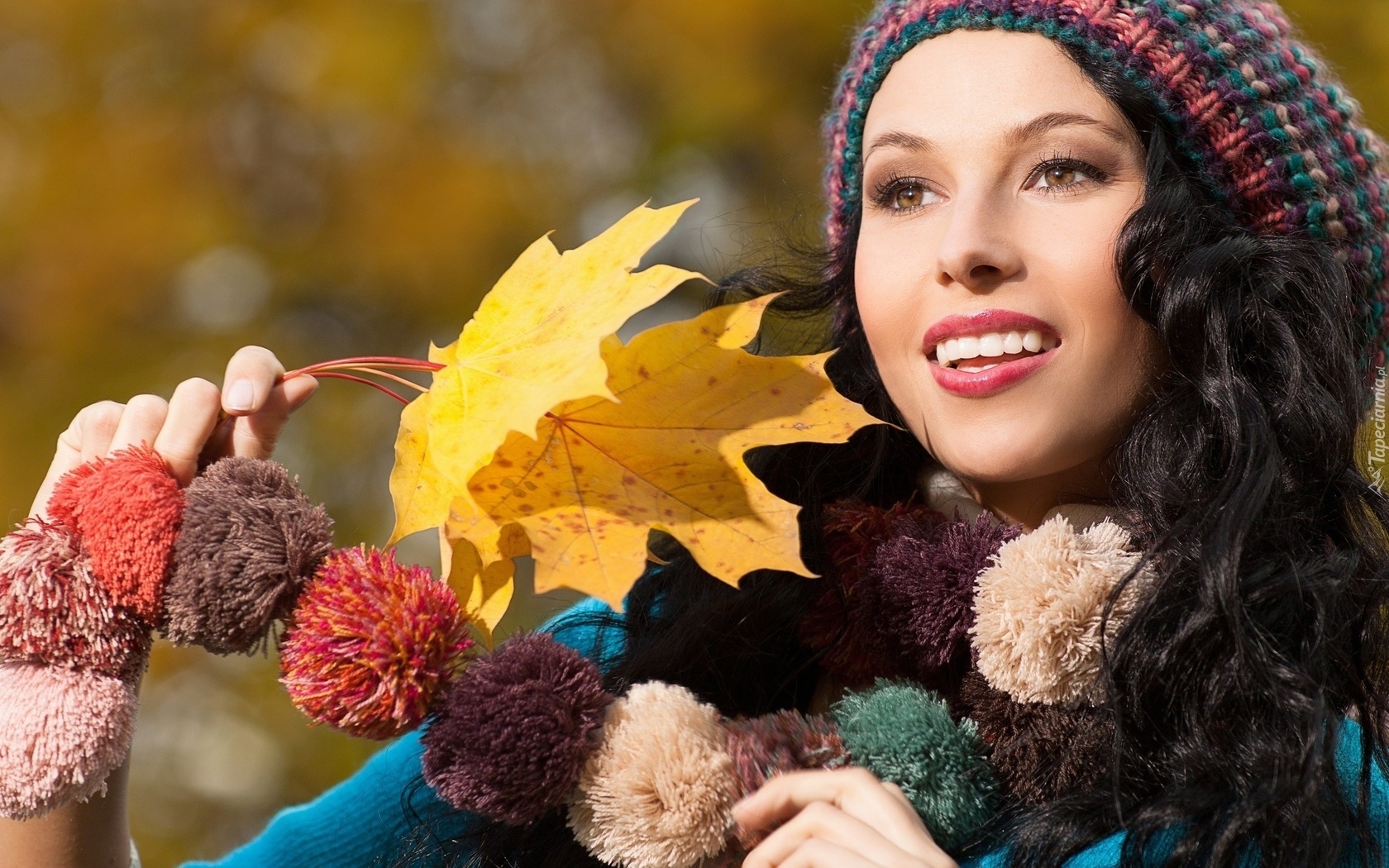 Edytor tapety: Kobieta, Jesień, Klonowy, Liść, Czapka, Szalik
