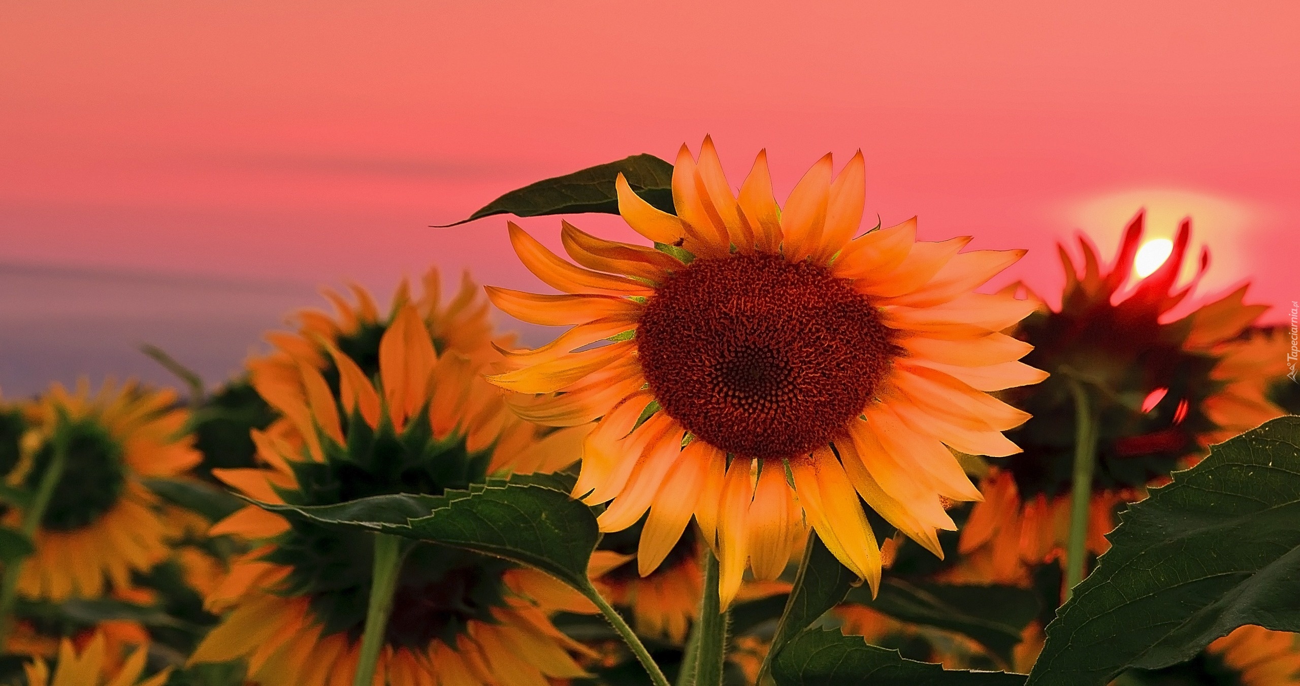 Edytor tapety: Słoneczniki, Zachód, Słońca