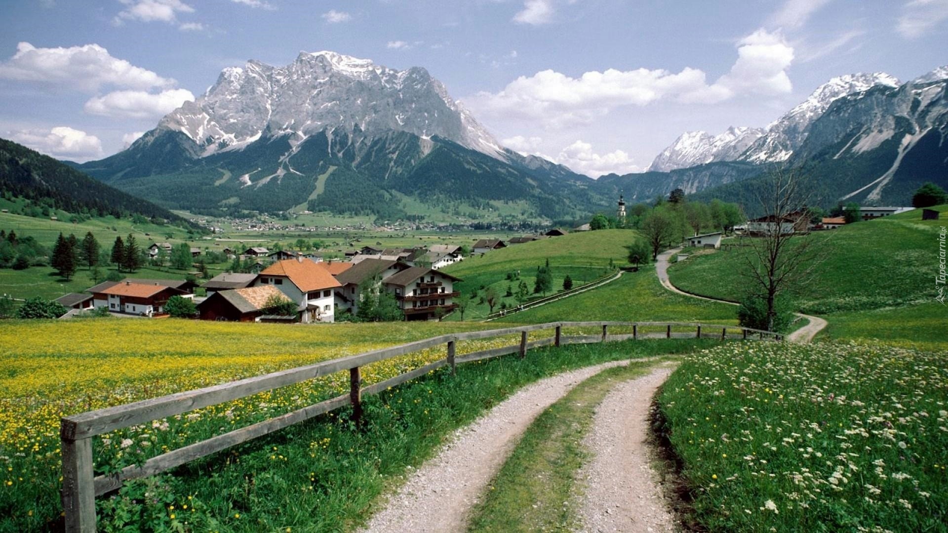 Edytor tapety: Alpejska, Wioska, Pola, Łąki