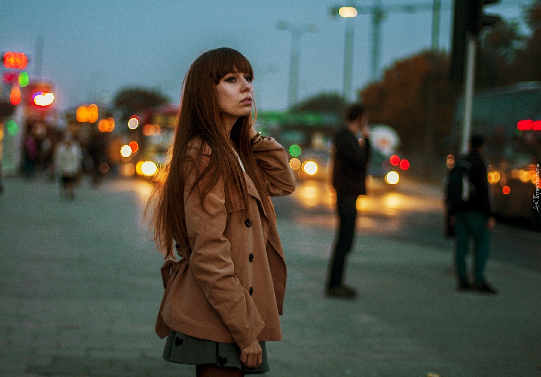 Edytor tapety: Kobieta, Szatynka, Miasto