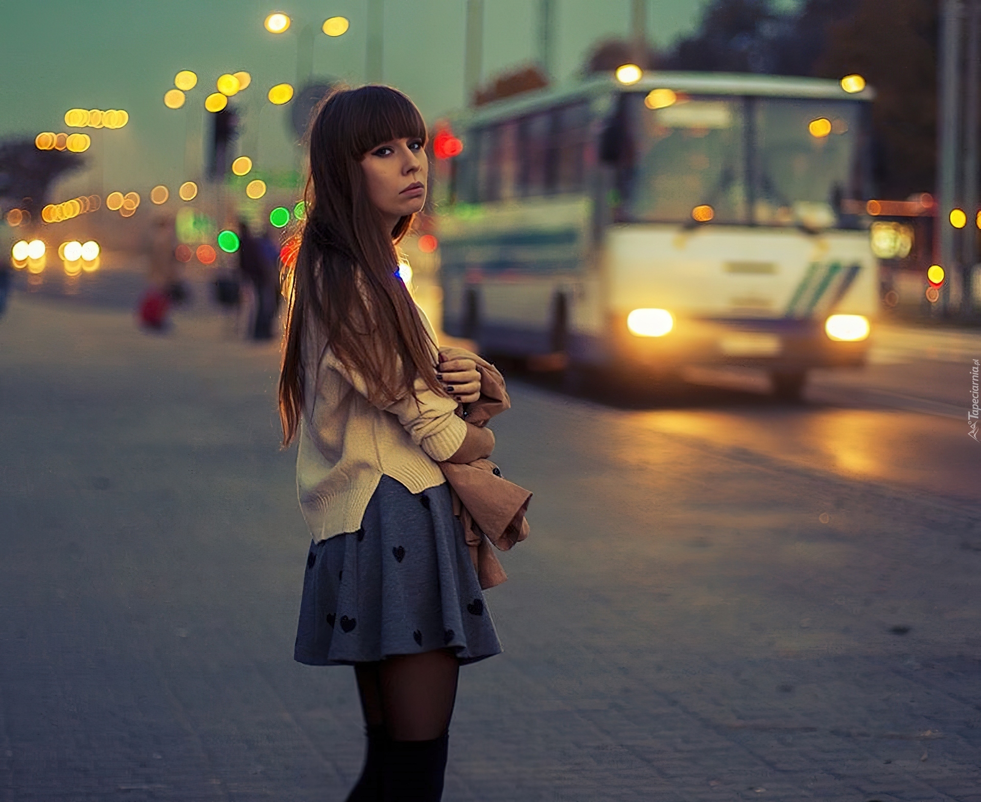 Edytor tapety: Kobieta, Szatynka, Miasto