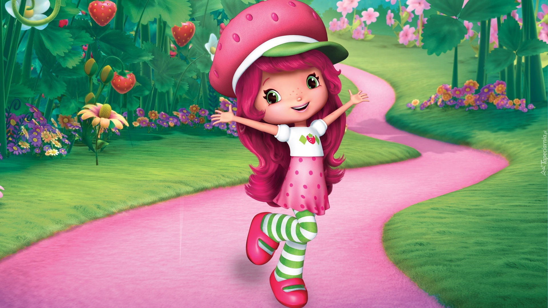 Edytor tapety: Truskawkowe ciastko, Strawberry Shortcakes Berry Bitty Adventures, Truskawka, Ogród, Serial animowany, Bajka