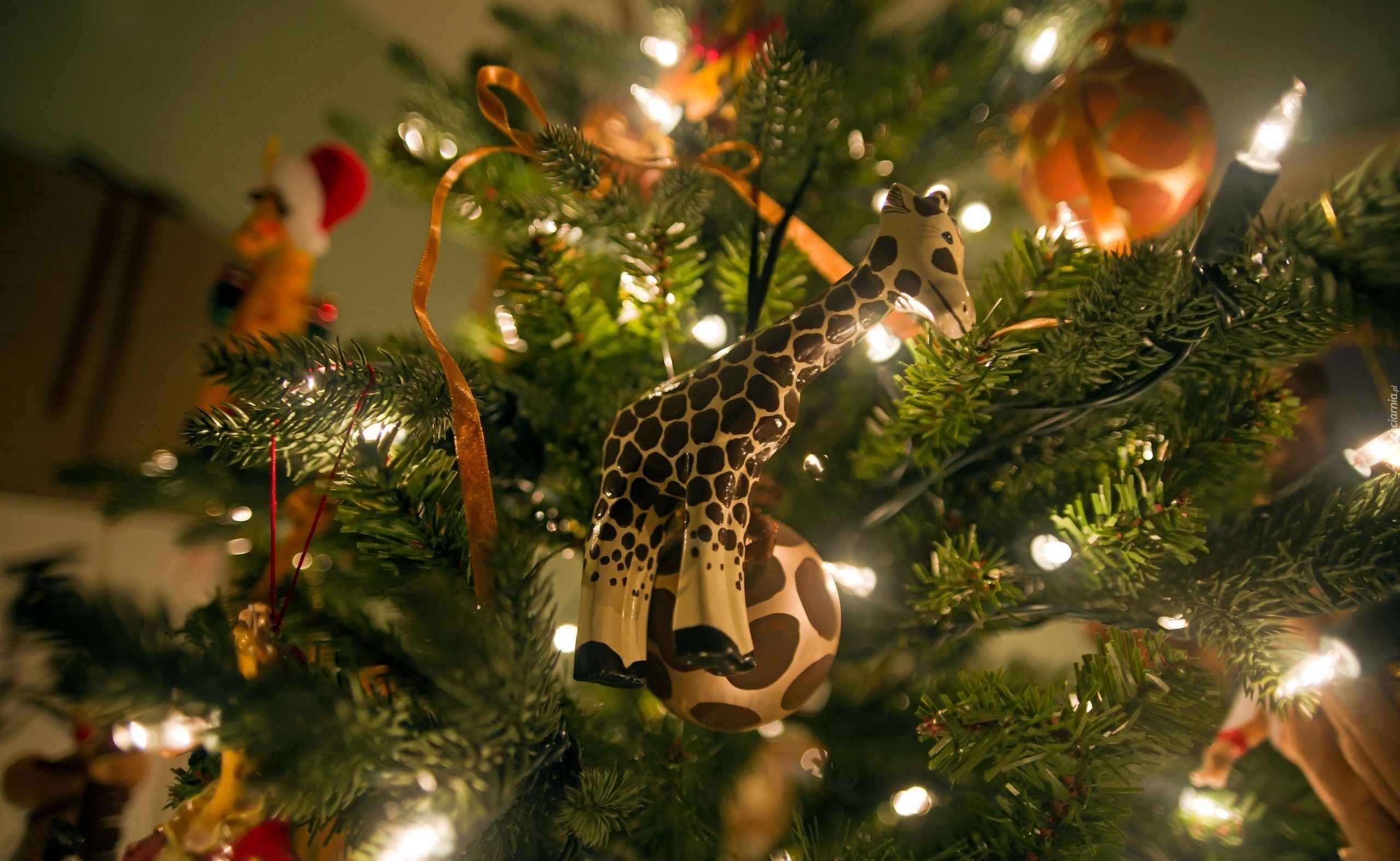 Edytor tapety: Choinka, Ozdoby, Światełka, Żyrafka