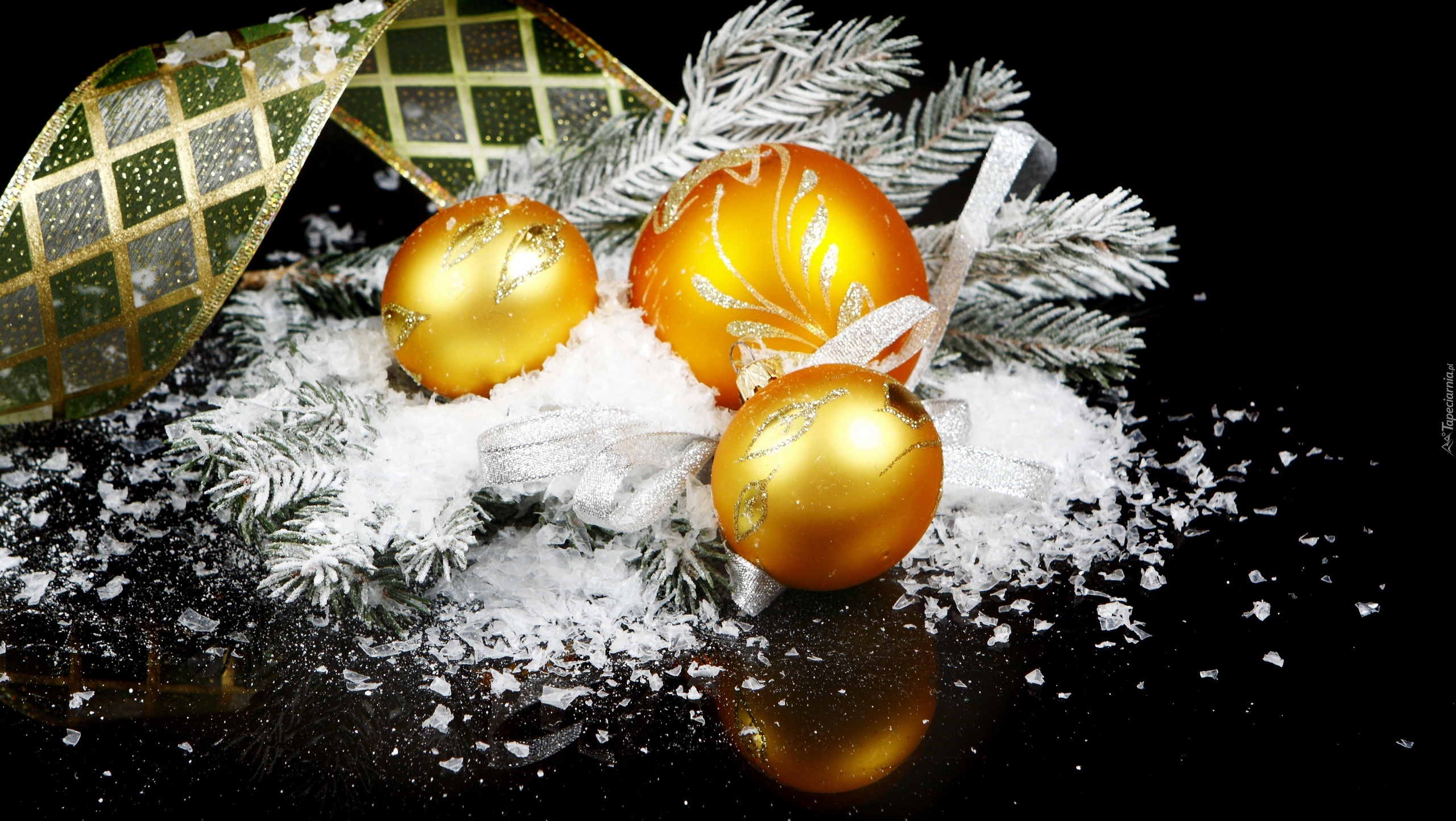 Edytor tapety: Ozdoby, Choinkowe, Wstążka, Śnieg